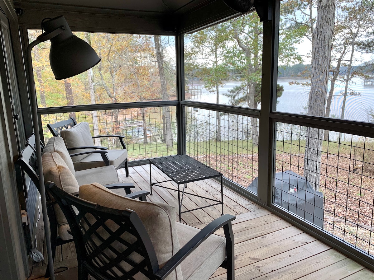 Burvīga ezera fasādes māja! Mūsu mājīgā vieta ir lieliska atpūta pāriem un ģimenēm, kas ir gatavi atvienoties no elektrotīkla un atpūsties. Piedāvājumā ir makšķerēšanas nūjas, spēles un piestātne, lai ielēktu tīrākajā ezerā Džordžijā! Skaisti skati uz ezeru no visām galvenajām mājokļa zonām un liela terase grilēšanai un dabas baudīšanai. Šis mājoklis ir gan atpūta, gan piedzīvojums, ko neaizmirsīsiet. Mīļdzīvnieku minimālā nodeva ir 60 $! 🐶 Papildu maksa par kuģu piestātni! Lai rezervētu kotedžu, jābūt vismaz 25 gadus vecam!