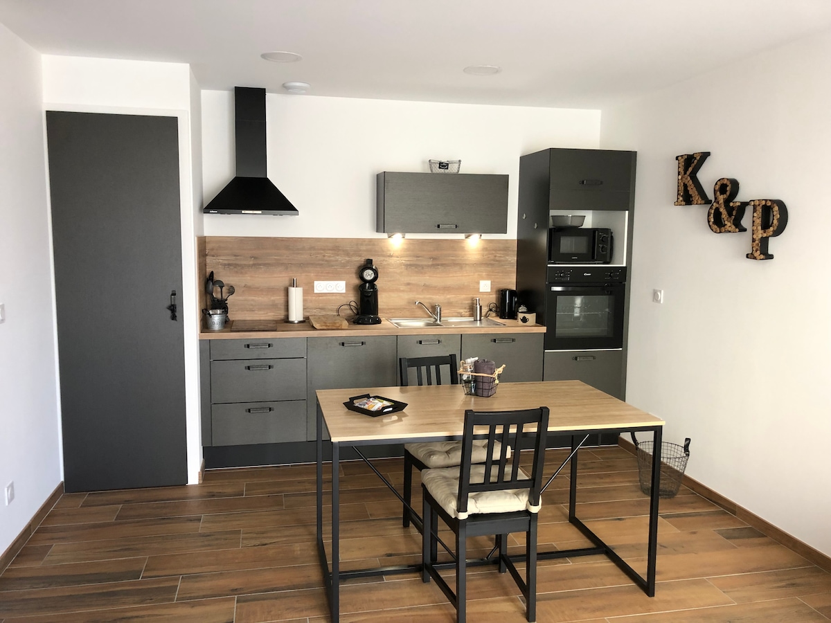 Ienāciet šajā 30 m2 platībā ar virtuvi/dzīvojamo istabu pirmajā stāvā, virtuvi/dzīvojamo istabu ar dīvāngultu, atvērtu plānojumu augšstāvā, 160 cm gultu, dušu un neatkarīgu tualeti. Jūs gaida sagaidīšanas paplāte ar tēju, kafiju, sulu un kūkām. Iespējama autostāvvieta privātā pagalmā Terases atvērums dārzā Tā atrodas Motte kalna malās, 150 m attālumā no pilsētas centra un tiesas nama, un tā ir lauku ainava līdz pilsētai! Neatkarīga ieeja Iespēja īrēt ar Mini Garni Vendemiaire vēl 1 guļamistabai.