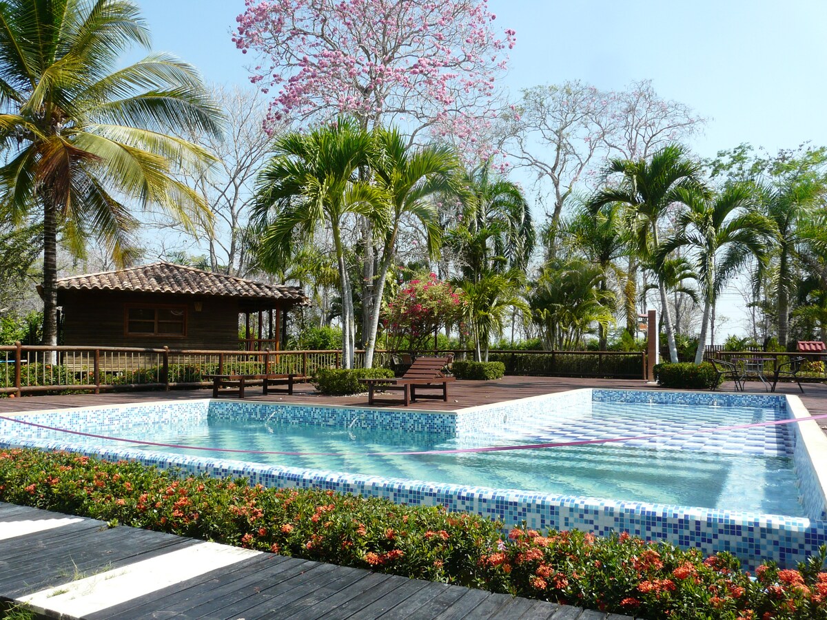 Este espacio tan elegante ofrece todo lo necesario para disfrutar de una estadía de lujo. Cabaña con capacidad hasta para 6 personas, baño interno, cocina integral con nevera, balcón, aire acondicionado, ventilador y hamacas.