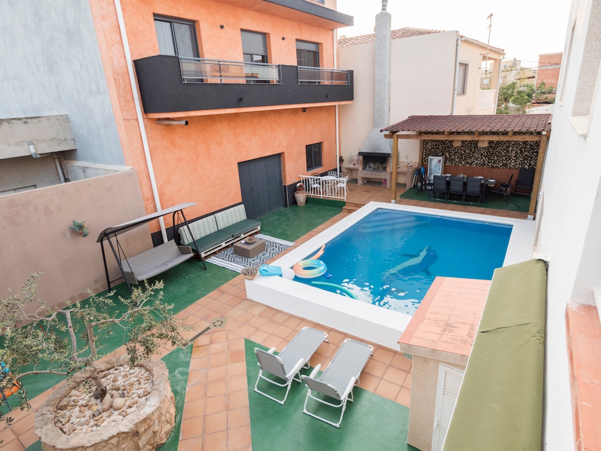 Kotedža ar privātu baseinu, kas atrodas pašā Ebro deltas sirdī. Plaša un gaiša māja sastāv no plašas ēdamistabas, plašas un funkcionālas virtuves, divām vannasistabām ar dušu, divām guļamistabām ar divguļamo gultu un citas ar divguļamo gultu un vienguļamo gultu. Mājas aizmugurē ir liela privāta un slēgta terase ar plašu terases zonu, baseinu un lieveni ar grilu un galdu. Ērta stāvvieta uz ielas un lielveikals tepat blakus