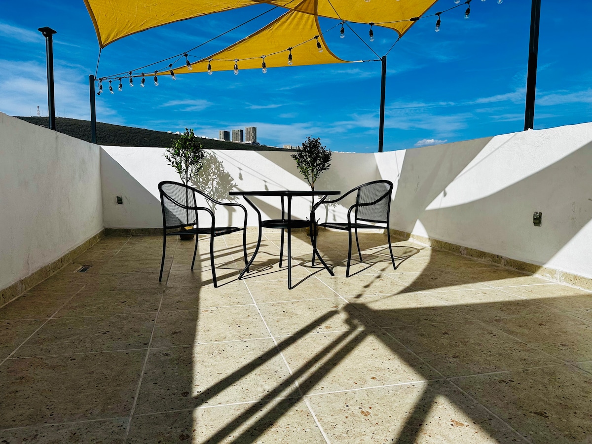Dzīvoklis ar neatkarīgu ieeju, minimālistisku iegriezumu, ideāli piemērots īstermiņa rezervācijām un atpūtai. Silts apgaismojums un bohēmisks . Liela terase ar vietējo veģetāciju. Lieliska atrašanās vieta netālu no Bernardo Quintana y Tec de Monterrey. Mēs nodrošinām kafiju un tēju. Piekļuve burbuļvannai ietver burbuļus. PIEMĒROTS MĪĻDZĪVNIEKIEM ( maksa par mīļdzīvnieku par nakti ir 200 $)