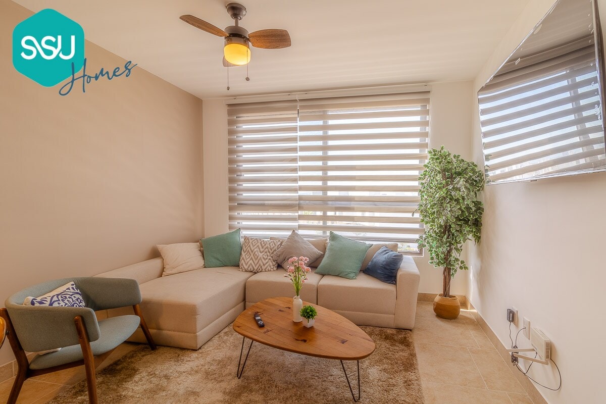Mājīgs dzīvoklis pirmajā stāvā, privāta un droša autostāvvieta, diennakts novērošana. Apkārt ir komerciāli rajoni, dzīvojamie rajoni (Zibatá, Zakia, El Refugio utt.) un ātrie ceļi. Ēdināšanas zonas 5 minūšu attālumā, Oxxo, mini super un aptieka 2 minūšu attālumā., Iepirkšanās laukumi 8 minūšu attālumā. Walmart, HEB, La Comer, Starbucks, The Home Depot, degvielas uzpildes stacijas, IMSS 8 min., lidosta 25 min, Plaza Paseo Querétaro 8 min, transporte por app y publico Klusa un droša telpa