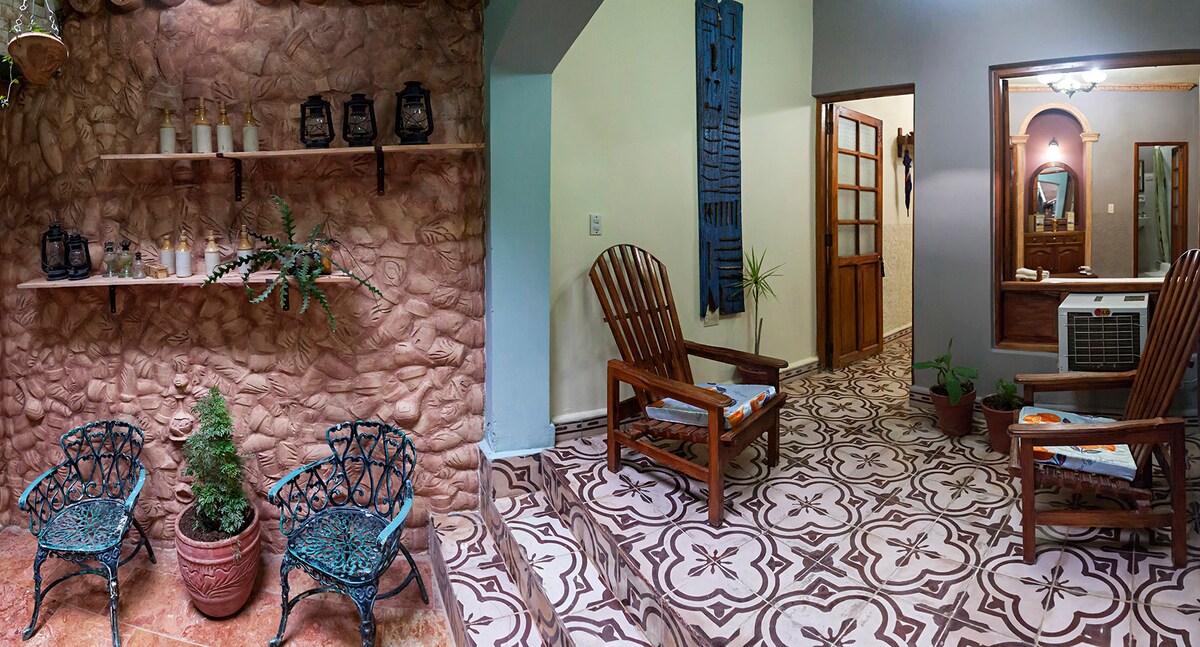 Mums ir akumulators, kas kompensē elektroenerģijas padeves pārtraukumus. Pilnīgā neatkarībā un privātumā jūs būsiet laipni gaidīti mūsu skaistajā mazajā mājiņā, kas atrodas skaistajā Trinidādas vēsturiskajā centrā, visu aktivitāšu centrā (diezgan klusā ielā, kas ir izcila Kubā).