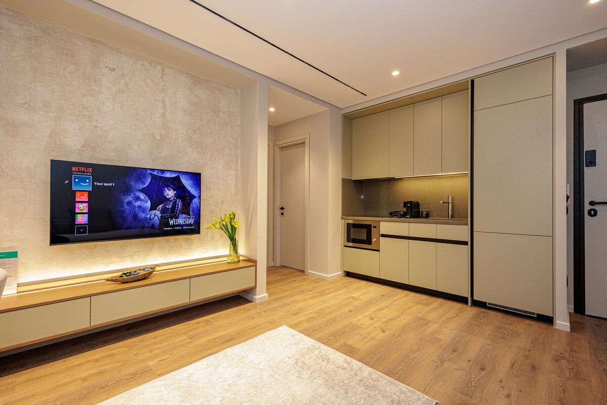 - Vienkārša pašreģistrēšanās ir pieejama visu diennakti. - Ātrs un stabils Wi-Fi (80 Mb/s DL / 15 Mb/s UL). - Gaisa kondicionētājs katrā telpā, veļas mašīna un žāvētājs. - Ērta gulta ar atmiņas putām. - Iknedēļas uzkopšana ar jaunu gultasveļas un dvieļu maiņu. - Bez maksas: Netflix, Disney+, Amazon Prime Video, SkyShowtime. - Aprīkota virtuve, cepeškrāsns un espresso automāts - Iekļauts viss ēdiena gatavošanas pamataprīkojums (olīveļļa, sāls, pipari, cukurs, kafija un tēja). - Pazemes autostāvvieta tajā pašā ēku kompleksā. (Nav bez maksas. Viesis apmaksā).