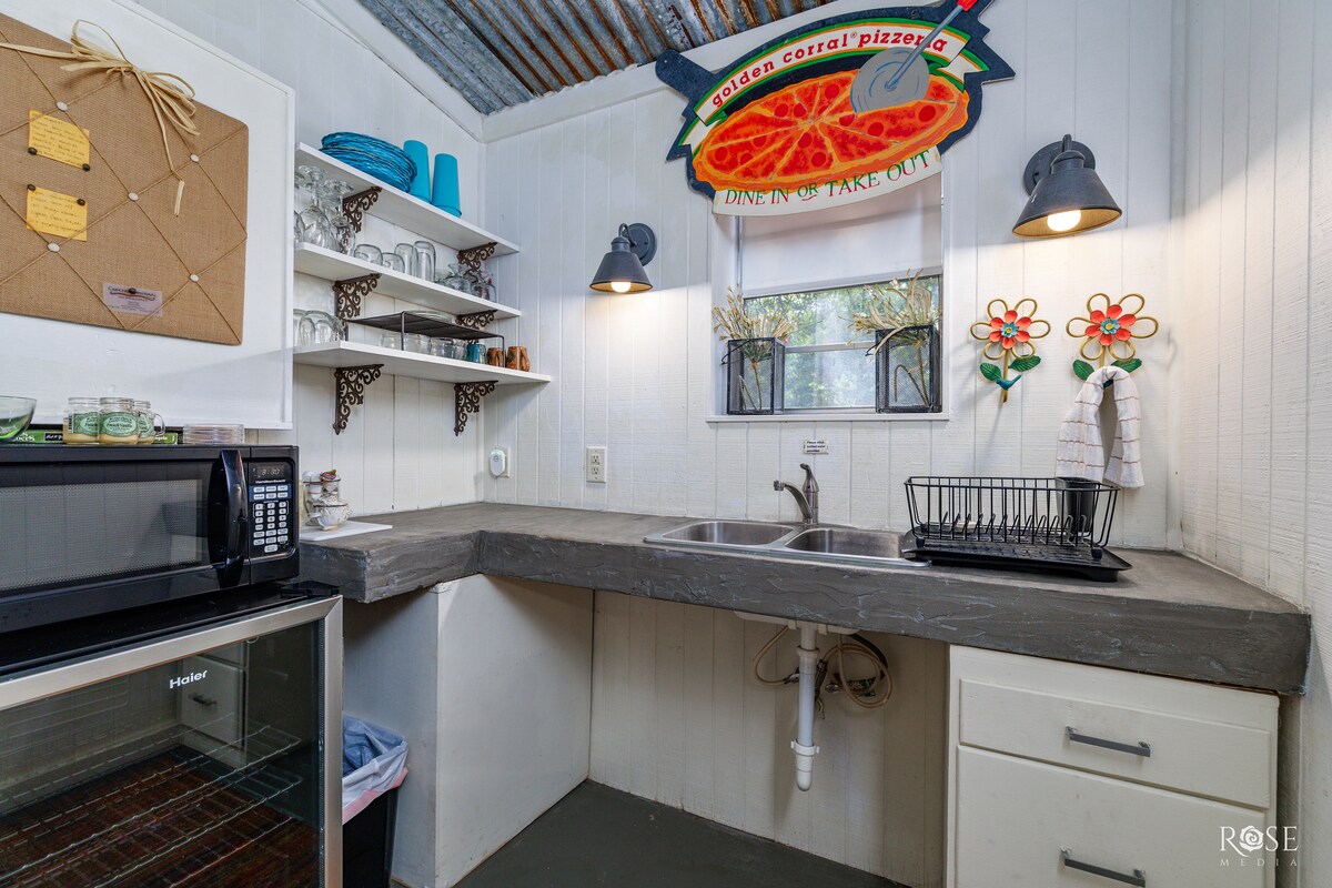 Izbaudiet mierpilnu atpūtu pie San Sabas upes Menardā, Teksasā. Wi-Fi nav pieejams! Jūs paliksiet mājīgā divu guļamistabu, 1 vannasistabas mājoklī ar pilnībā aprīkotu virtuvi, ēdamzonu, dzīvojamo istabu un atpūtas verandu mierīgiem rītiem un vakariem. Šajā īpašumā ir daudz pastaigu taku, kas izvietotas vairāk nekā 5 hektāru platībā upē aiz namiņa. Jūs varat makšķerēt, peldēt, doties izbraucienā ar kajaku vai vienkārši atpūsties zem skaistiem kokiem, pat apstāties un sarīkot pikniku, ja vēlaties! Tā ir ideāla atpūta Rietumteksasā!!