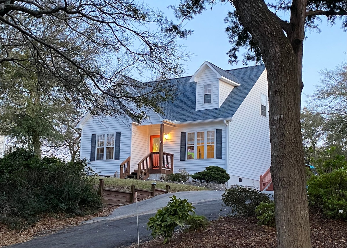 Šī piekrastes kotedža, kas atrodas skaistajā Carteret ragā, atrodas skaistā krastmalas apkaimē, tikai nelielā attālumā no Emerald Isle pludmalēm, vietējām vakariņām un izklaidēm. Ņemiet līdzi laivu, ūdensmotociklus, velosipēdus vai golfa ratiņus - piebraucamajā ceļā ir pietiekami daudz vietas! Tiek piedāvātas visas modernās papildērtības, tostarp: - Bruģēta autostāvvieta - Veranda ar iebūvētām mēbelēm - Nesen atjaunota virtuve, kas aprīkota ar ēdiena gatavošanas piederumiem - Veļasmašīna un žāvētājs - Trauku mazgājamā mašīna - Ātrs Wi-Fi - AppleTV ar YouTube TV