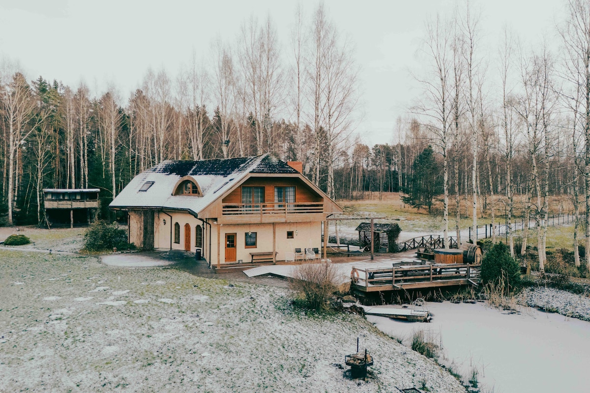 Silta džakuzi mājīgā koka mājā ar baseinu