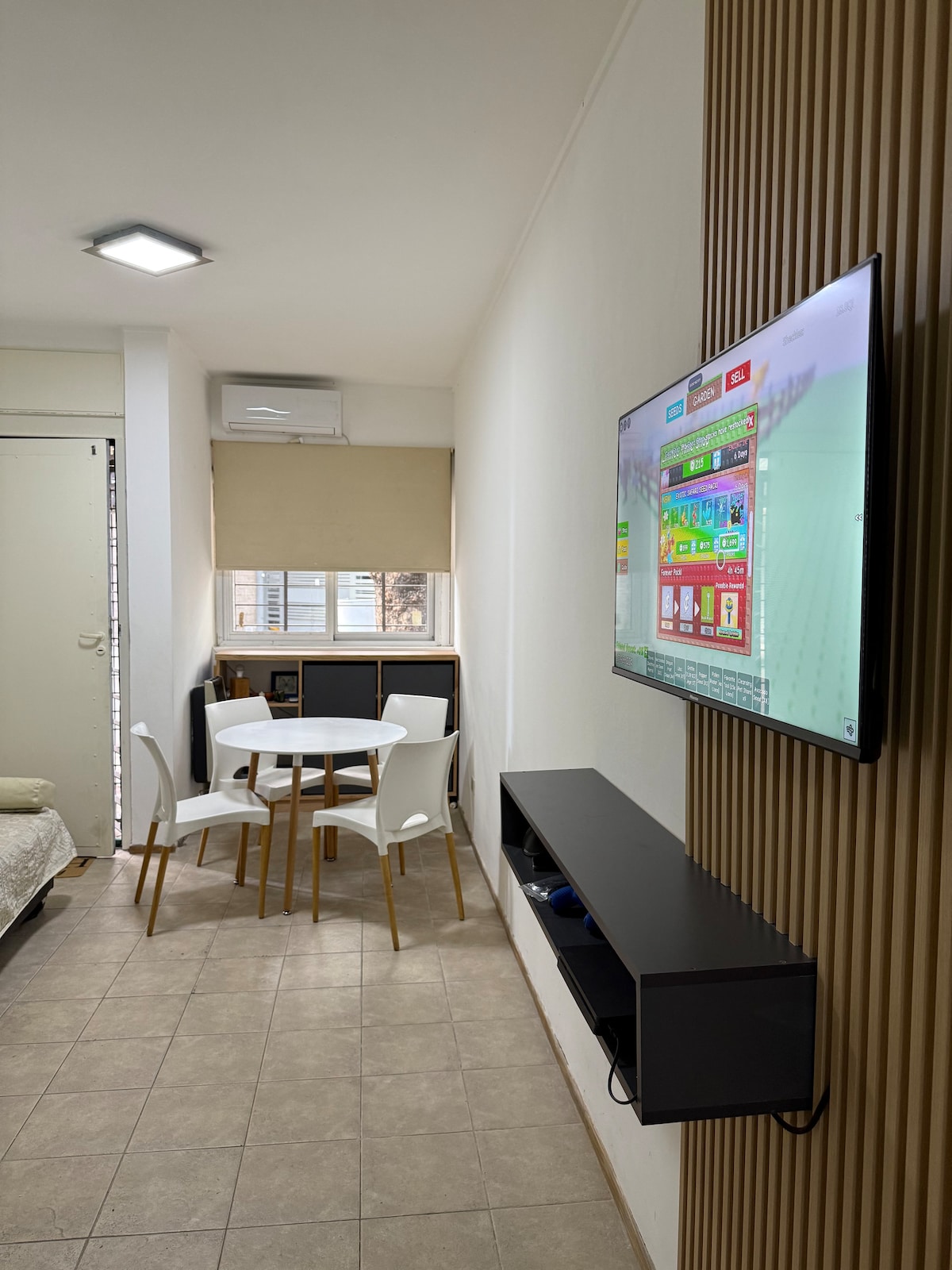 Hermoso departamento de 1 dormitorio en inmejorable zona céntrica. Tiene amplios ventanales luminosos y balcón a la calle. Barra desayunadora. El living cuenta con un sofá cama, un Smart Tv de 55 pulgadas y aire acondicionado en todo el ambiente. El edificio tiene quincho con asador, pileta y solárium. En la cuadra hay bares, gimnasio, dietetica, markets, verduleria y más!