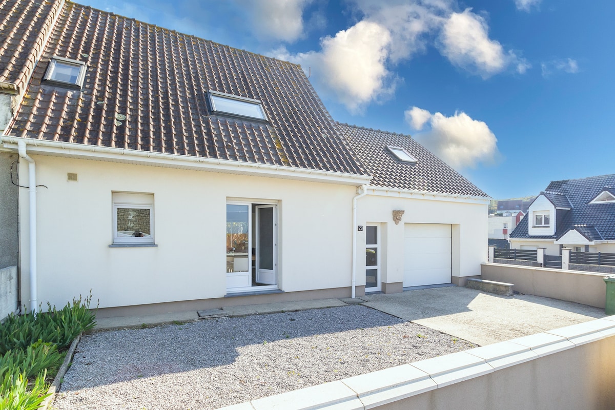Jauna māja ar skatu uz jūru, kas var uzņemt 4 cilvēkus + 1 mazuli, tuvu pilsētas centram un smilšu pludmali, klusā vidē. Tajā ir viss nepieciešamais komforts ar aprīkotu virtuvi, kas ir atvērta viesistabai, logiem un lielu terasi ar skatu uz jūru. 2 guļamistabas, bērnu aprīkojums. Tuvumā: Le Touquet (30 km), Boulogne 4 km attālumā atrodas Nausica, muzeji Transfērs (25 km) Golfs 10 km attālumā, Gājēju taka 500 m attālumā ūdens sports, makšķerēšana, veloceliņš. lauku saimniecību izpārdošana 100 m attālumā.