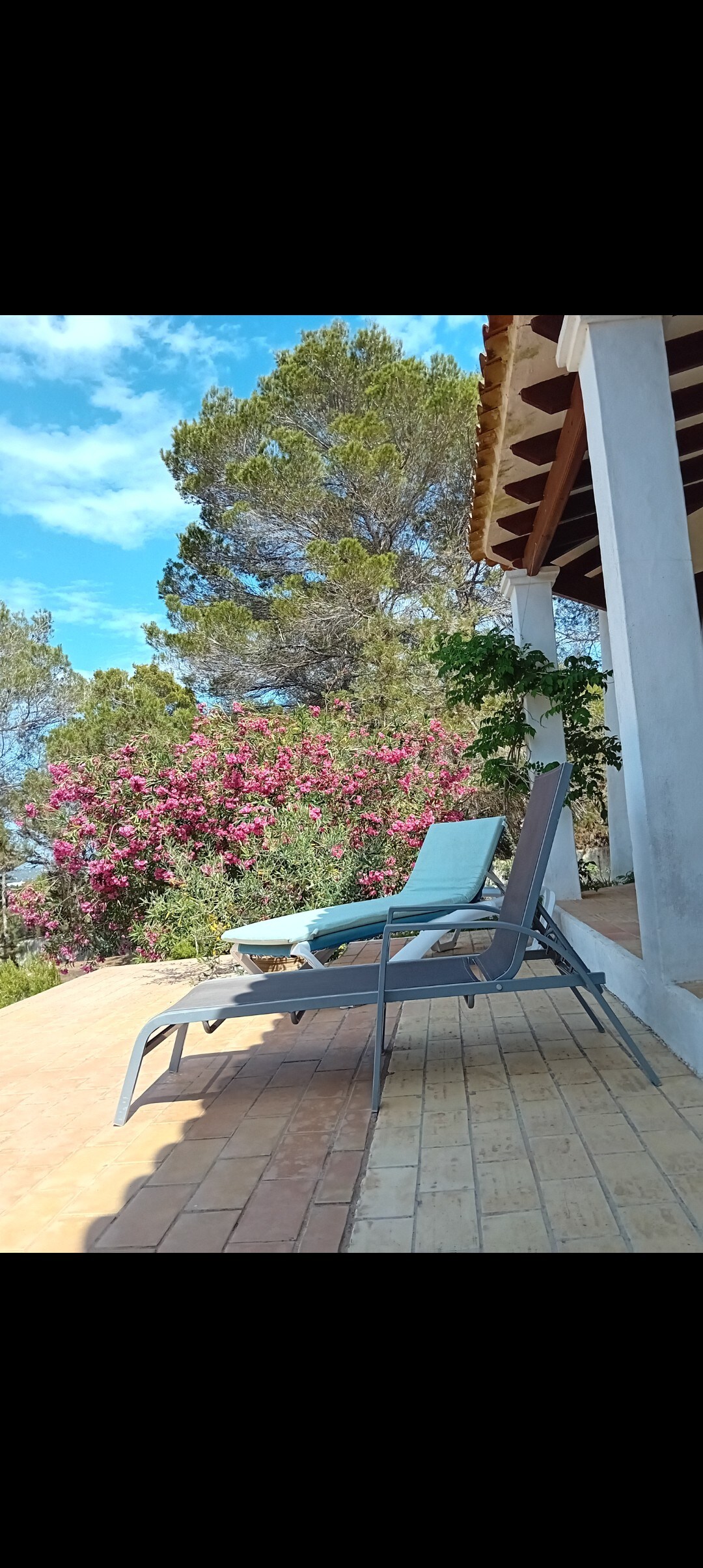 Villa con piscina e vista mare immersa nella quiete di una pineta. ESFCTU0000070370000842210000000000000000000000ET41286 La casa è composta da un salone con tavolo da pranzo per 10, una zona tv/camino, una cucina separata due camere, due bagni più uno di servizio, due portici con poltrone, amache e tavoli da pranzo di cui uno affaccia sulla piscina e con vista mare/ibiza. La dependance adiacente alla casa centrale è formata da camera, bagno, cucinotto e terrazza isolata.