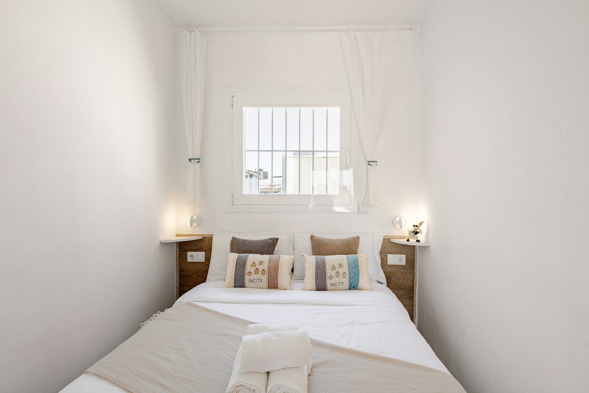Dzīvoklis ar terasi pilnībā renovētā ēkā, 5 minūšu attālumā no Plaça Espanya ar lielisku saziņu ar lidostu, vilcienu, centru... Pilnībā aprīkots. Klusa un ar lielu gaismas daudzumu. Optimizēts ar daudzfunkcionālām telpām. Tajā ir ēdamzona ar integrētu virtuvi un vannasistaba ar dušu. Tajā ir 2 guļamistabas: pirmā ar 150x200 cm divguļamo gultu un skapi; otrajā ir 135x200 cm divguļamā gulta un rakstāmgalds. Ātrgaitas Wi-Fi un gaisa kondicionētājs/siltumsūknis. Pagaidu BŪDIŅAS licence 03-IU2019-2995