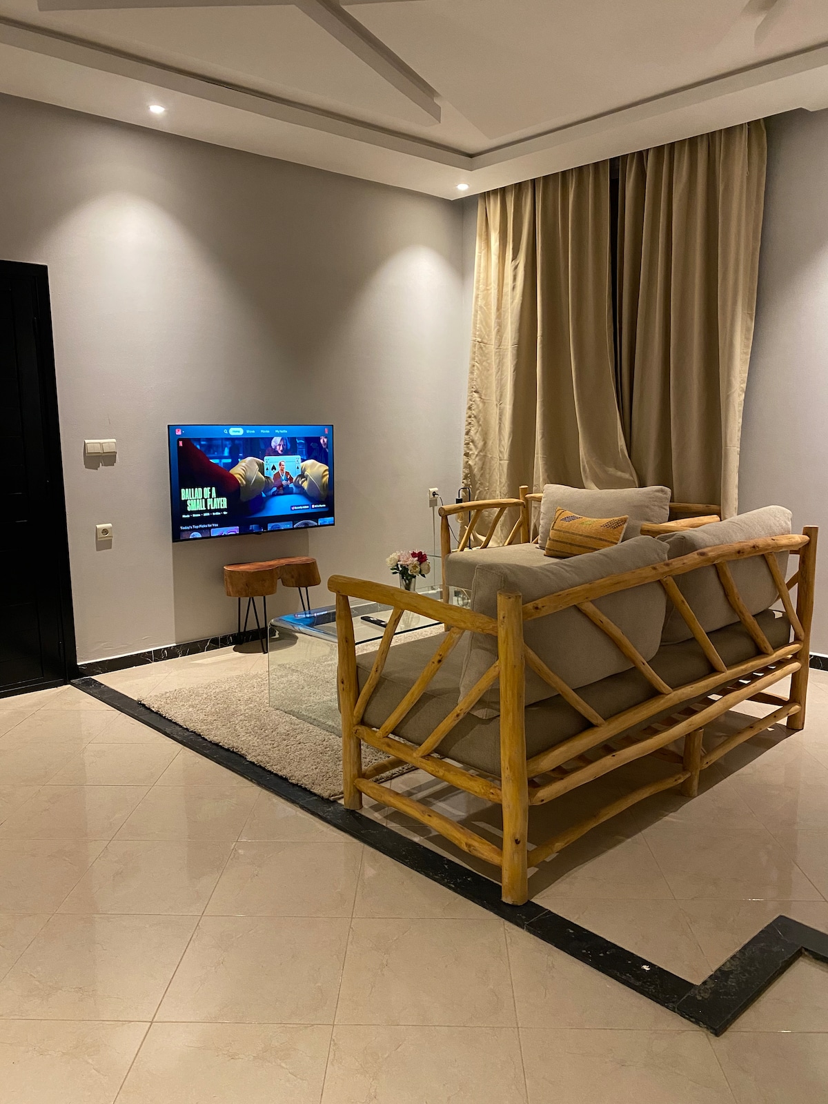 Bienvenue à Dar Aya 2 , appartement atypique de 70 m2 entièrement rénové à l’aide d’artisans locaux dans un style « Beldi chic »où se mêlent confort et décoration raffinée. Chaque détails et objets ont été choisi pour vous faire voyager dans un Maroc authentique. Situé dans un quartier tranquille et proche de toutes commodités vous pourrez vous rendre à la médina et à la plage en 15 minutes à pied. À l’étage , vous aurez accès à une superbe terrasse privative avec vue sur Essaouira.