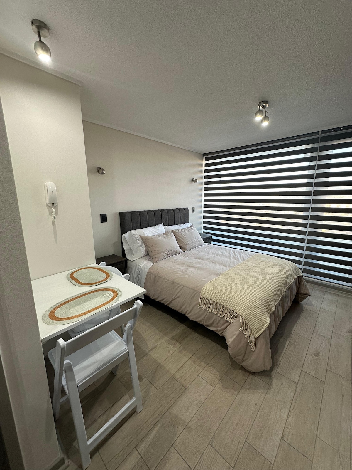 Disfruta de este departamento nuevo, full equipado para dos personas, cerradura inteligente, céntrico y muy cómodo, ideal para alojarse en Concepción. A pasos de la Universidad de Concepción, Hospital Regional, Tribunales, etc El edificio cuenta con Seguridad conserjería 24/7, Circuito Cerrado de Tv, Estacionamiento privado Subterráneo y Lavandería del edificio
