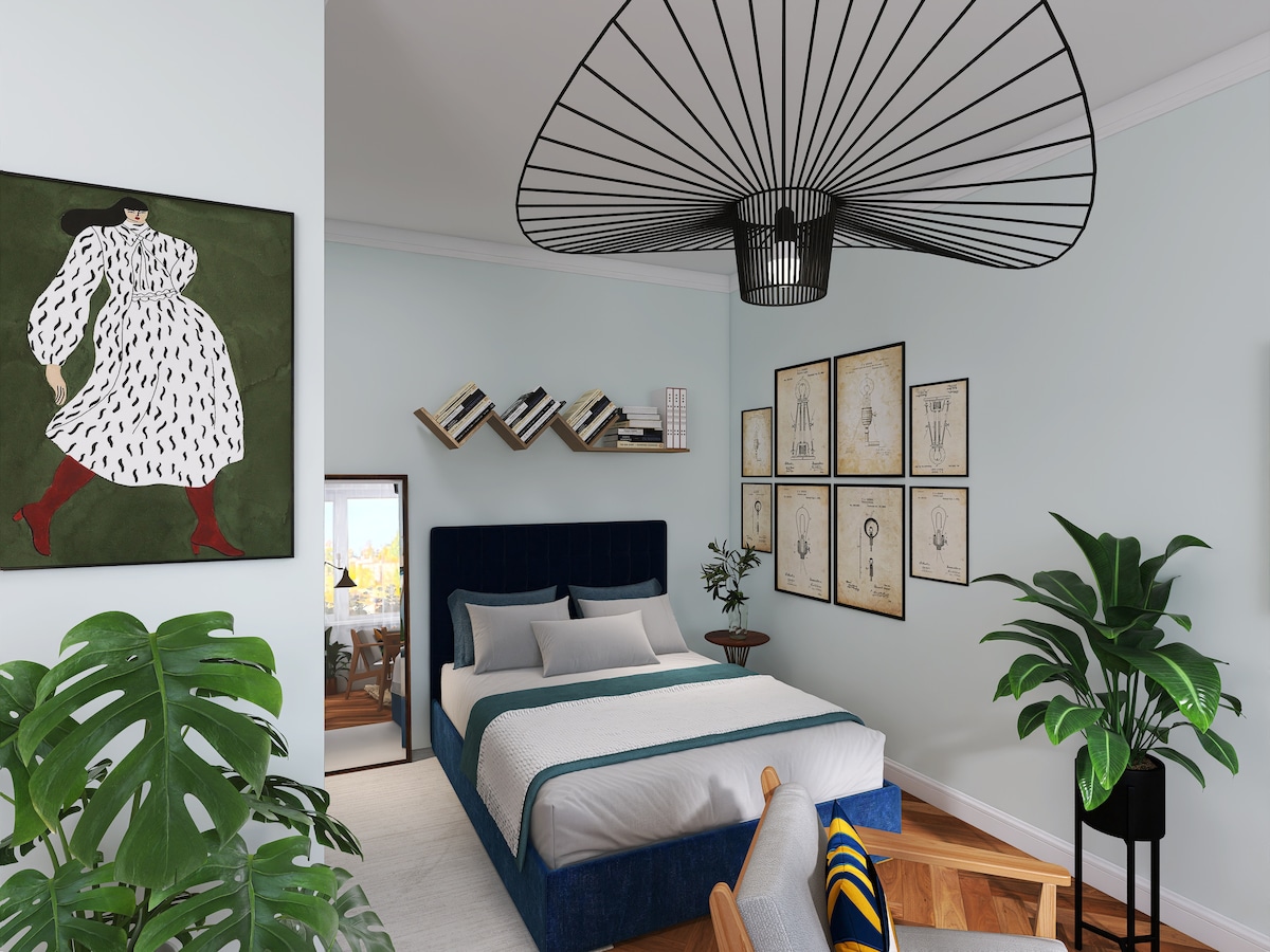 Mūsu 1 istabas atvērtās virtuves studijas tipa dzīvoklis atrodas pilsētas centrā, ceturtajā stāvā. Dīvāngultai ir matracis ērtai gulēšanai, kā arī tumšināšanas aizkari un pilnībā aprīkota virtuve. Mājā ir bezmaksas sporta zāle, jumta terase un veļas mazgātava viesiem. Ir iespējams rezervēt arī kinozāli. Pirmajā stāvā atrodas kafejnīca, kur var baudīt rīta konditorejas izstrādājumus un kafiju. Bezmaksas autostāvvieta uz ielas tuvumā, maksas autostāvvieta blakus mājai. Dzīvoklis ir ideāli piemērots pāriem, kā arī jauka vieta, kur palikt, ja vēlaties strādāt.