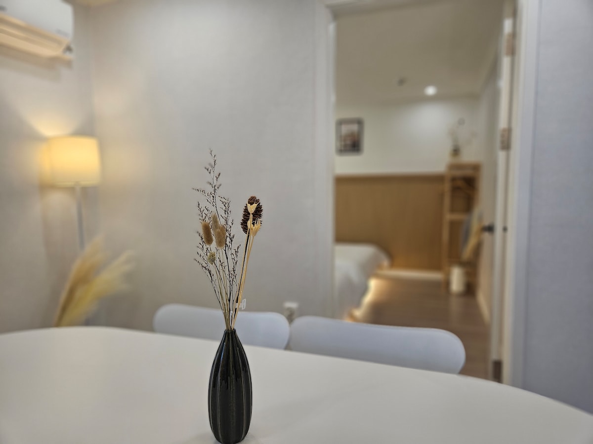🌿Šajā centrā esošajā īpašumā ir plaša telpa, kas piemērota vairāku cilvēku uzturēšanās vietai. Tā ir plaša viesistaba un divas istabas, kas ir piemērotas grupām, ceļojumiem un darījumu braucieniem. 🌿Laika ceļvedis Reģistrēšanās plkst. 15:00 Izrakstīšanās ~ 11:00 Lūdzu, sazinieties ar mums iepriekš, ja jums ir nepieciešama agrīna reģistrēšanās vai vēla izrakstīšanās. (10 000 KRW stundā)