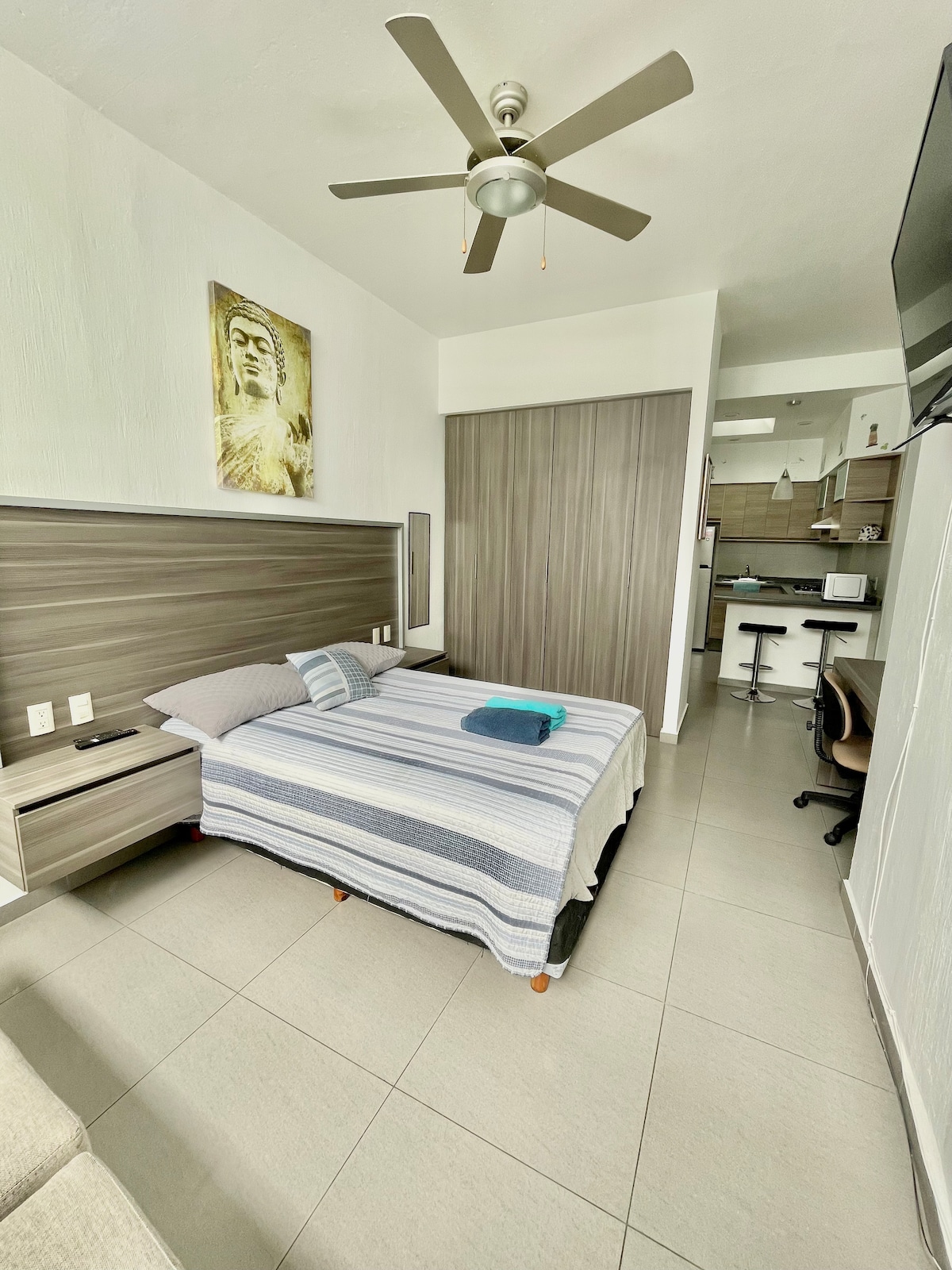 Izbaudiet skaistos saulrietus Gvadalaharā vienā no drošākajām, vislabāk savienotajām un gastronomiskākajām apkaimēm pilsētā. Šī modernā mīļdzīvniekiem piemērotā studija ir paredzēta īstermiņa vai ilgtermiņa rezervācijām. Tai ir neparasta terase, lai sagaidītu jūsu apmeklējumus. Tas ir vesels dzīvoklis ar divguļamo gultu, ēdamistabu, pilnu virtuvi, privātu terasi, veļas mašīnu, gludekli, televizoru, internetu (100 mb) un seifu. Tā atrodas trešajā stāvā, un tajā nav lifta.