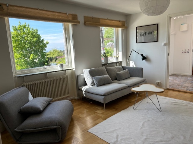 Nyrenoverad och smakfullt inredd lägenhet i sekelskifteshus. Här har du närhet till city, vackra naturstigar, skridskobana, skidspår på sjön. 10 minuters bilväg till flygplatsen och 2,5 km in till centrum via bil, cykel eller fina promenadstråk. Kostnad tillkommer för elbilsladdning (typ 2 kontakt 16A), handdukar och sängkläder. Städning utförs av hyresgäst innan utcheckning. Städutrustning finns att tillgå. Permantet boende värdfamilj bor på övervåning men har separat ingång. Väl mött.