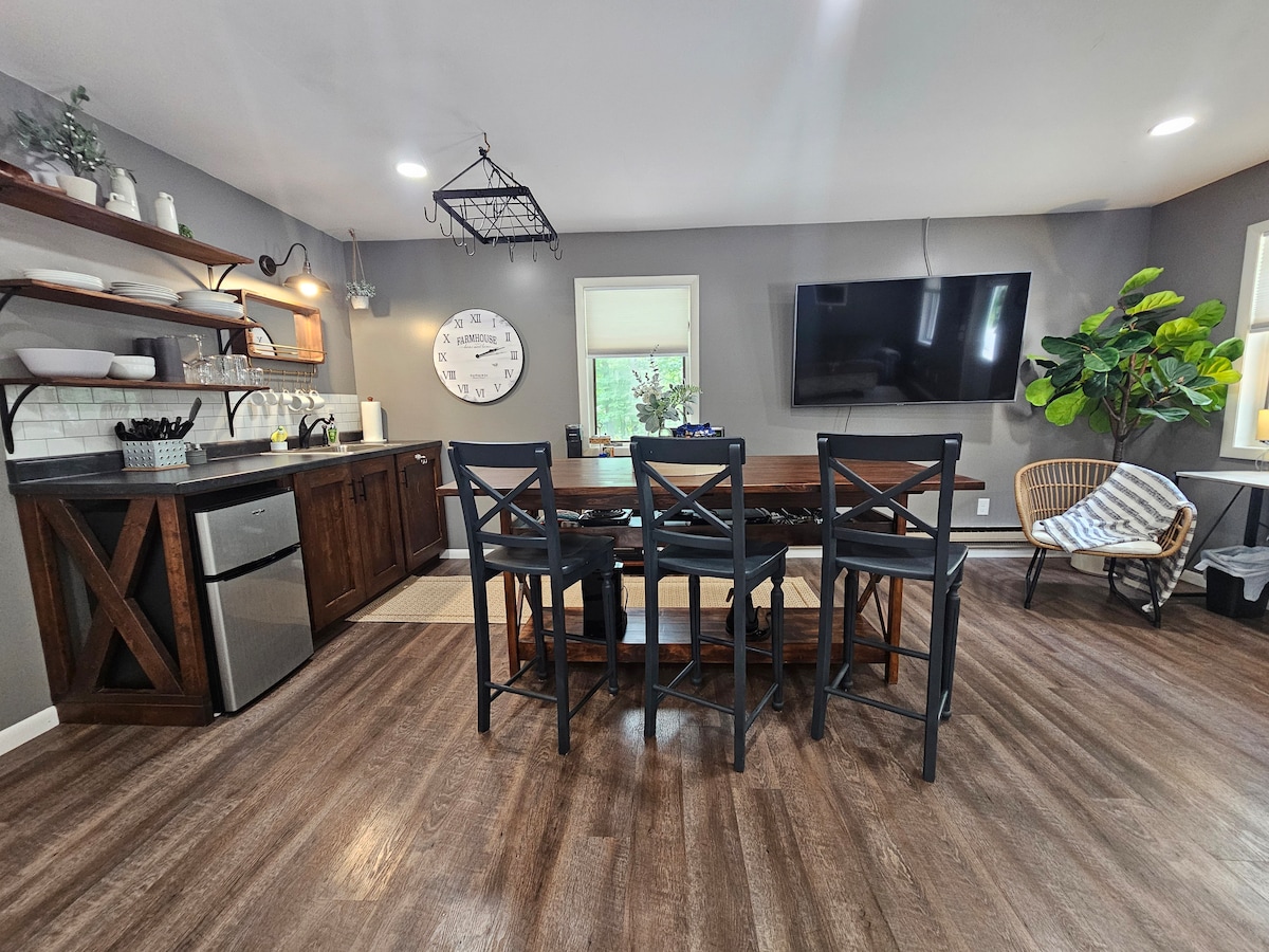 Come relax in our cozy, modern country, studio apartment. It is equipt with a fully stocked kitchenette, private bathroom, comfortable living space, large screen tv and office work space. Enjoy some of the most picturesque landscape Northern Indiana has to offer. We are just a 10 min walk from Stone Lake and have kayak rentals available upon request. We are conveniently located 8 miles from Shipshewana and Middlebury, IN and just a 40 minute drive from Notre Dame.