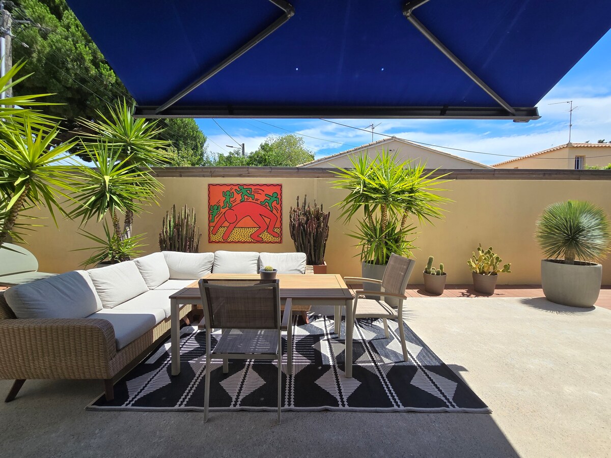 Cette spacieuse maison d esthète finement décorée par son propriétaire fan d art et de musiques peut accueillir 4 personnes. Elle dispose d’une terrasse de 80m2 avec une confortable banquette de jardin et table à manger pouvant accueillir 6 convives. Elle est située à 10 minutes des premières plages, 3 arrêts de Tramway du centre-ville, entre les quartiers près d Arènes et Port Marianne. Elle bénéficie d'une place de parking privée.