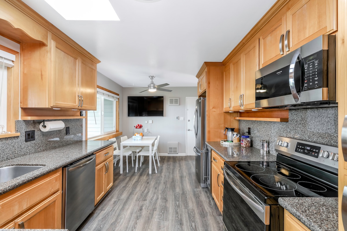 Šis viesnīcai līdzīgais mājoklis ir profesionāli atjaunots un veidots tā, lai maksimāli palielinātu jūsu uzturēšanās komfortu, ērtības un prieku. Virtuvē ir milzīgs WOW faktors ar nerūsējošām augstākās klases ierīcēm, kas ir pilnībā aprīkotas un ir ideāli piemērotas ēdiena gatavošanai, izklaidei vai cepšanai. Dzīvošana iekštelpās/ārā ar divviru franču durvīm, kas abas atveras līdz skaistajai pagalma telpai ar terases mēbelēm, grilu un ugunskura vietu, kas ir ideāli piemērota mūsu apbrīnojamo laikapstākļu baudīšanai Kalifornijā. Viedtelevīzija ir pieejama katrā istabā šajās Netflix naktīs!