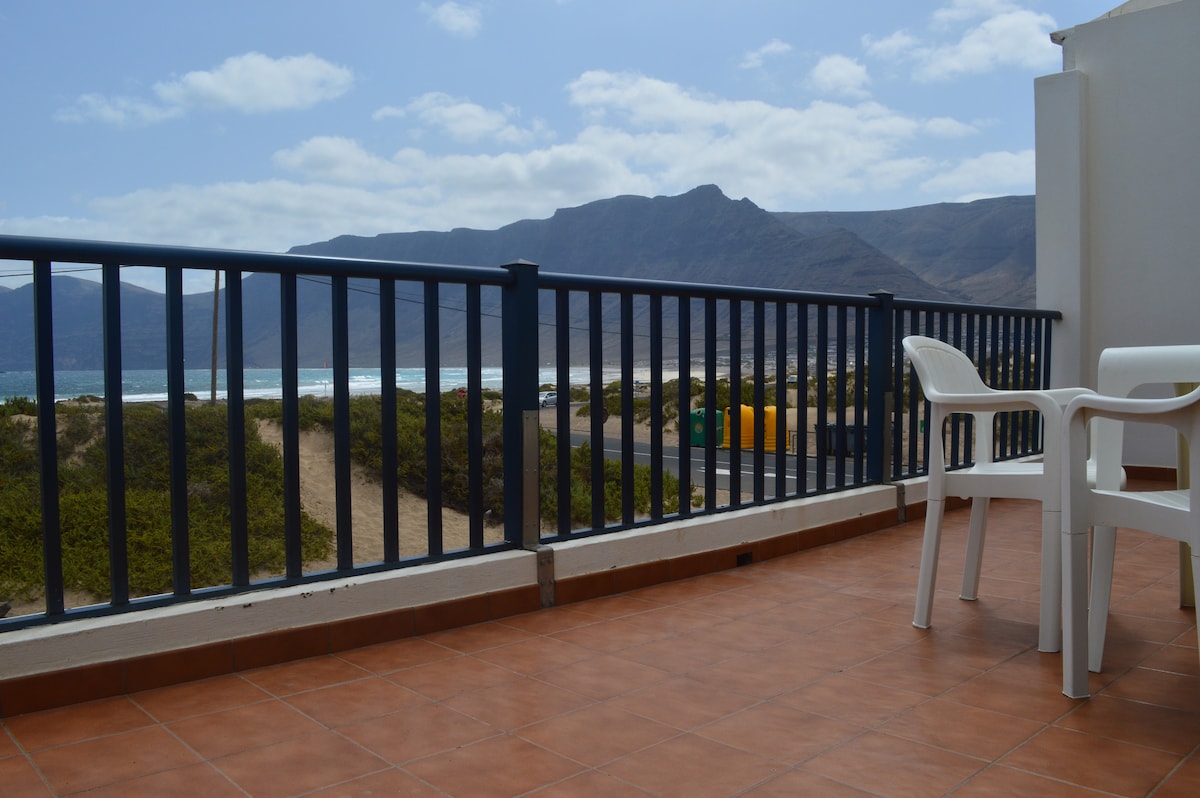 Divstāvu māja pašā Playa de Famara pirmajā rindā, uz smiltīm, ar tiešu privātu piekļuvi pludmalei. Unikāli skati un netraucēta jūras skaņa no viesistabas loga, arī no virtuves, un pats īpašākais galvenajā guļamistabā augšstāvā ar lielo terasi, kas ir atvērta jūrai. Ar apdari, kas pilna ar gleznām un detaļām, lai radītu atmosfēru ar personību. Tam ir arī terase ar iebūvētu grilu tieši pludmalē. Iekļauti dvieļi.