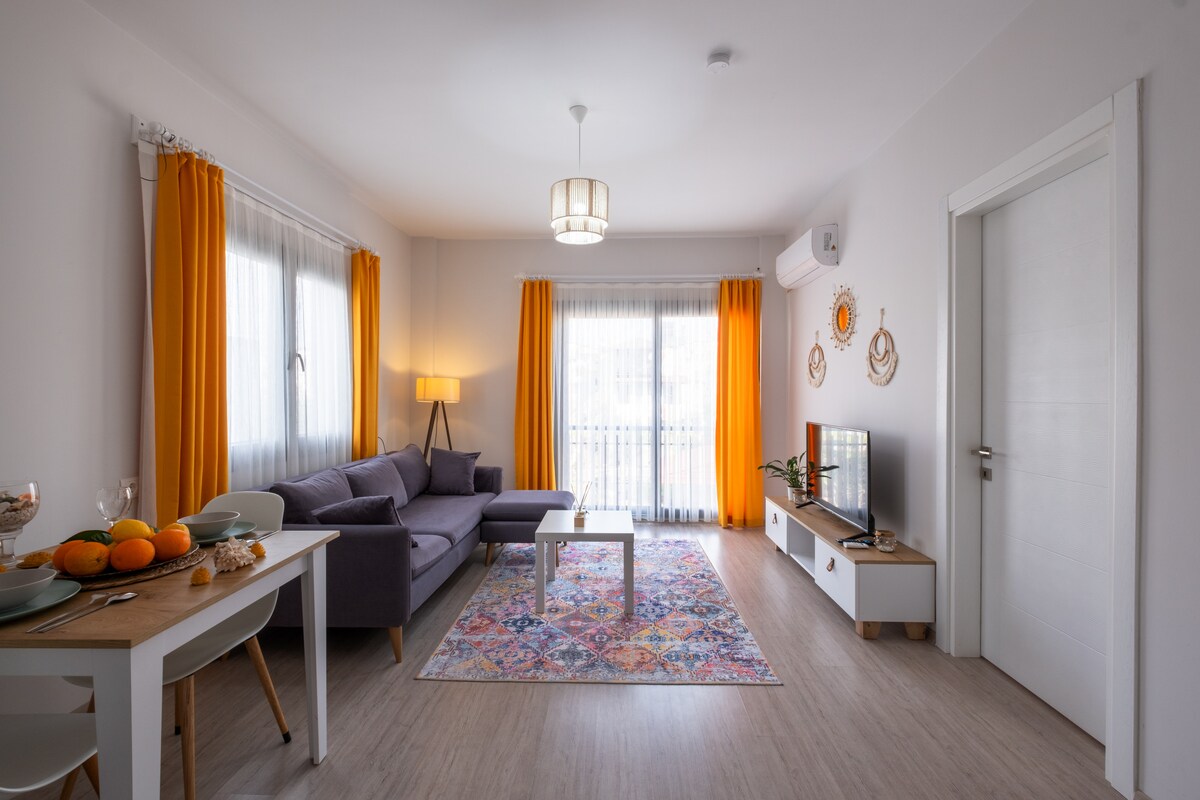 Šis modernais un stilīgais 1+1 dzīvoklis, kas atrodas Fethiye, ir gatavs ērtām brīvdienām. 🌿 Lielais balkons piedāvā brokastis ar putnu skaņām no rīta. 🛋️ Pilnībā mēbelēts interjers: gaisa kondicionētājs, Wi-Fi, virtuve, dīvānu komplekts, televizors, veļas mašīna 🚗 Privāta autostāvvieta un centrālā atrašanās vieta: tikai 2 minūšu attālumā no autoostas un iepirkšanās centra Šis ērtais dzīvoklis, kurā varat uzturēties kā ģimene, ir ideāli piemērots gan tiem, kuri vēlas atrasties tuvu pilsētas centram, gan tiem, kas meklē klusumu. Mēs piešķiram lielu nozīmi tīrībai un viesu apmierinātībai.