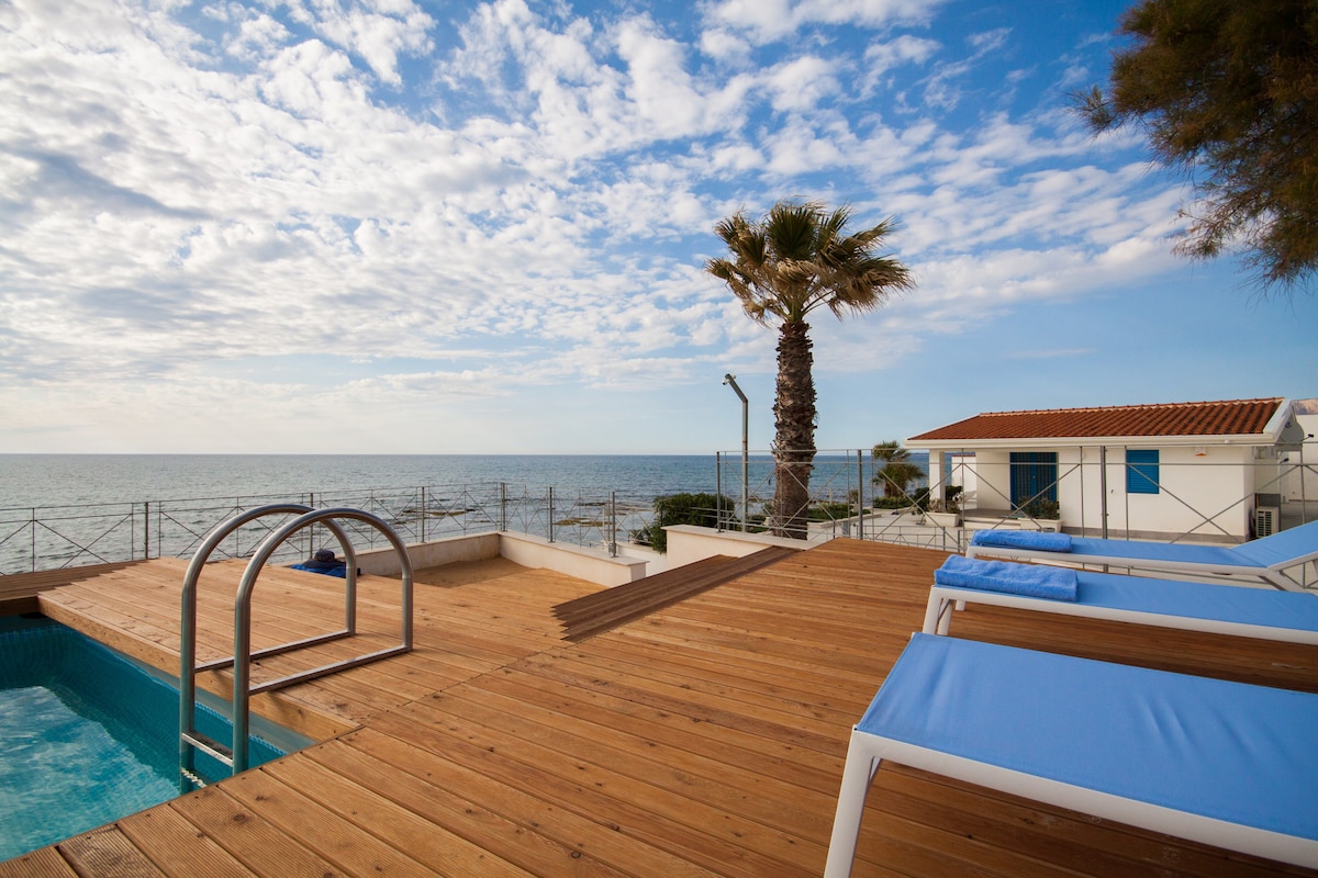 Atpūtieties ar skatu uz jūru kotedžā ar baseinu.