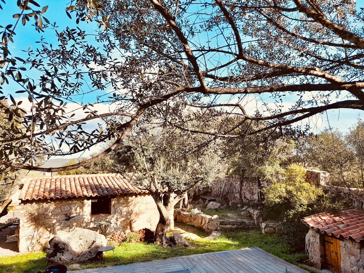 Jūs sapņojat par jauku atvaļinājumu! Mūsu akmens māja, kas atrodas mežaina un zaļa īpašuma sirdī, ir ideāla vieta, kur uzlādēt baterijas un atklāt Dienvidkorsikas brīnumus. Mūsu naktsmītne, kas apvieno autentiskumu un komfortu, atrodas 2,7 km attālumā no skaistās Pietragione Santa-Giulia pludmales, 3,5 km attālumā no Santa-Giulia līča, 4,4 km attālumā no Acciaro pludmales un 6,9 km attālumā no Palombaggia pludmales. Starp jūru un dabu nāciet un izbaudiet Korsikas būtību.