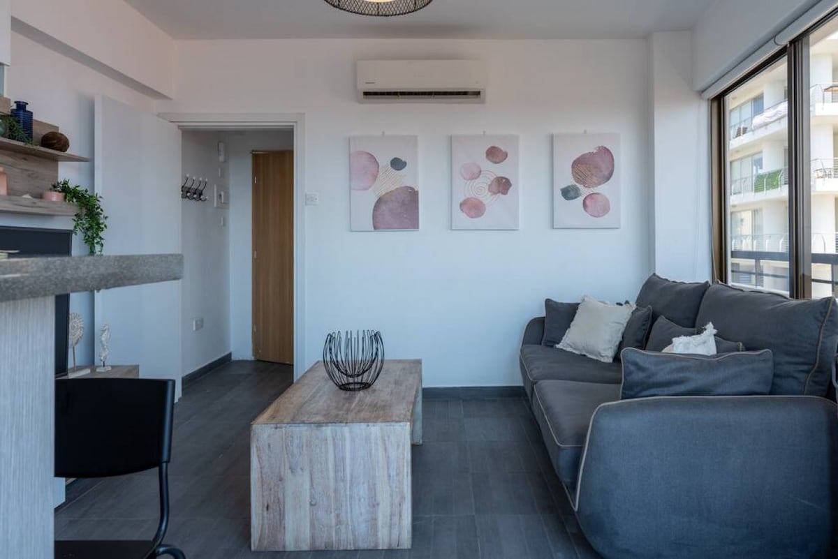 Laipni lūdzam mūsu elegantajā un modernajā 1 guļamistabas dzīvoklī! Šis pavisam jaunais, gaumīgi iekārtotais dzīvoklis piedāvā mājīgu un elegantu mājokli prom no mājām klusā apkaimē, tikai dažu minūšu brauciena attālumā no Larnakas centra un pastaigas attālumā no pludmales. Izbaudiet stilīgas dzīvojamās zonas komfortu un atpūtieties uz privāta balkona ar jauku skatu uz jūru no sāniem - ideāli piemērota rīta kafijai vai relaksējošam vakaram. Ideāli piemērots gan īsiem ceļojumiem, gan ilgākām rezervācijām.
