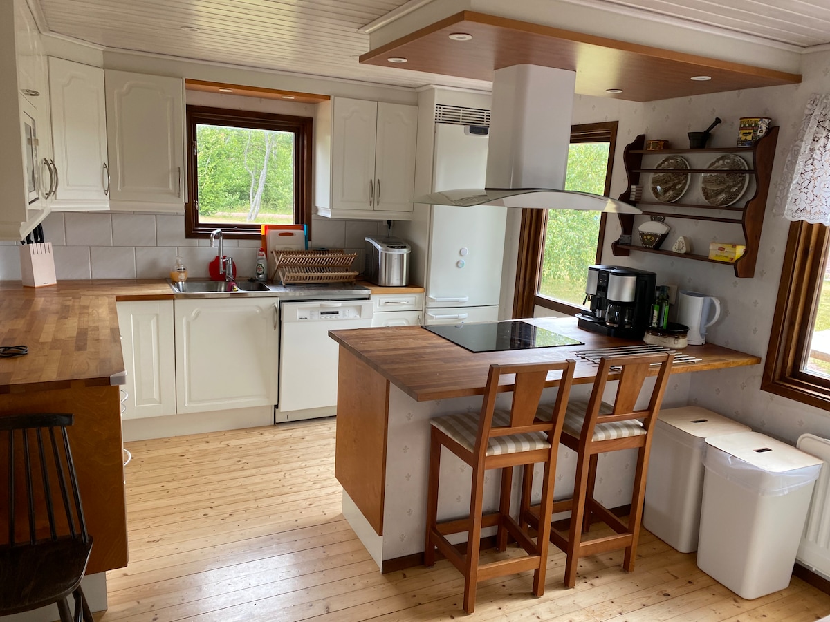 Ņemiet līdzi visu ģimeni vai draugus šajā apbrīnojamajā vietā, kur ir daudz vietas izklaidei. Daudz aktivitāšu tuvumā, bouldering, ūdens sporta veidi, disku golfs un īsts golfs. Māja 2 stāvos ir ļoti dāsna ar 8 gultām, no kurām viena ir divguļamā gulta, kas sadalīta 3 guļamistabās augšstāvā. Augšstāvā ir arī vannasistaba ar tualeti, kā arī durvis uz balkonu. Apakšstāvs ir vēl plašāks, un tajā ir liels ēdamgalds, kurā sēž 10 personas. Pilnībā aprīkota virtuve, kā arī veļas mašīna un žāvētājs.