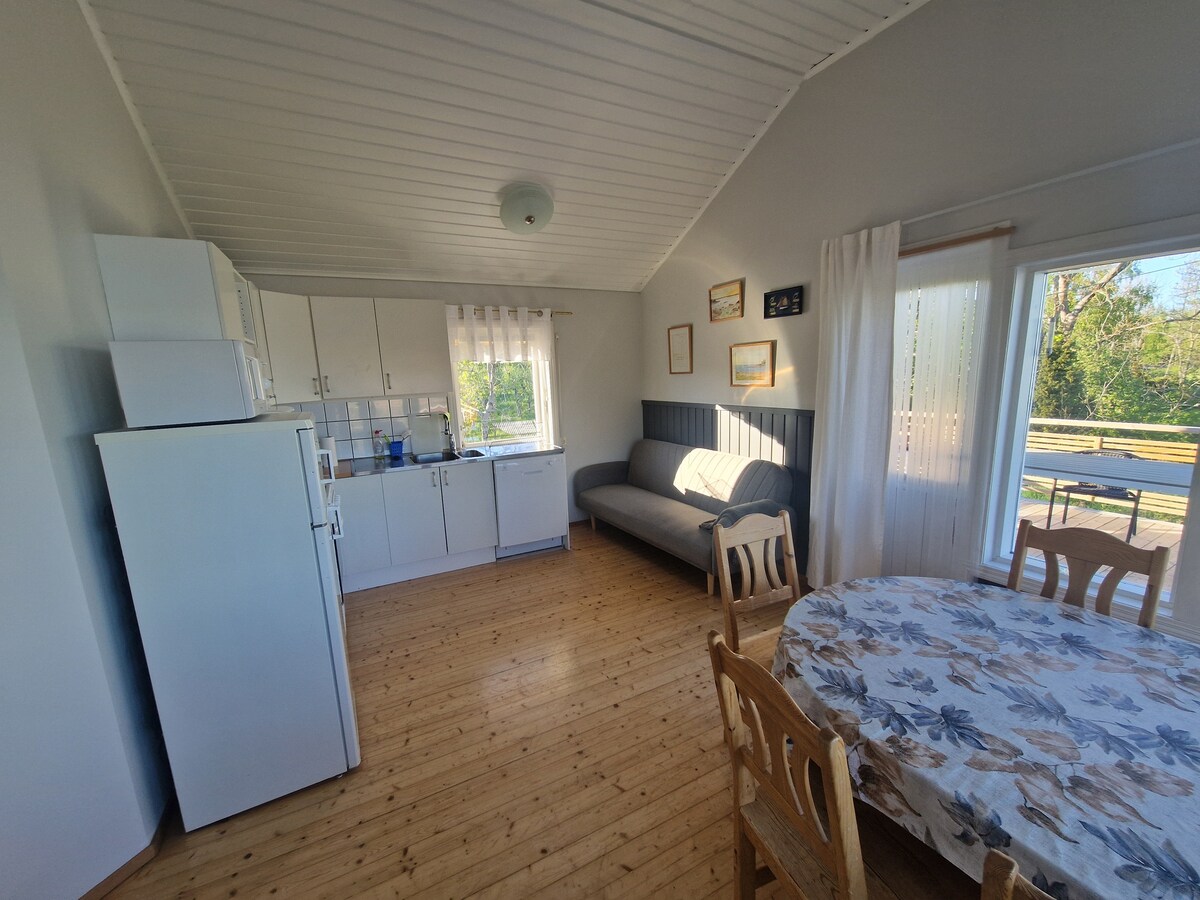 Gleznaina koka māja skaistā lauku saimniecībā Ālandu salās. Pie āra galda zem ābeļu kokiem varēsiet atpūsties Mājā ir vienkārša virtuve ar ledusskapi, elektrisko plīti ar cepeškrāsni Mājā ir laba tekoša aukstā ūdens padeve. Blakus mājiņai ir āra duša ar saules uzsildītu ūdeni. Blakus mājiņai atrodas āra tualete. No 08.00 līdz 22.00 tualeti un dušu var izmantot saimnieka mājā. Cenā ir iekļauti gultasveļa, pleds, dvielis rokām / dušas dvielis
