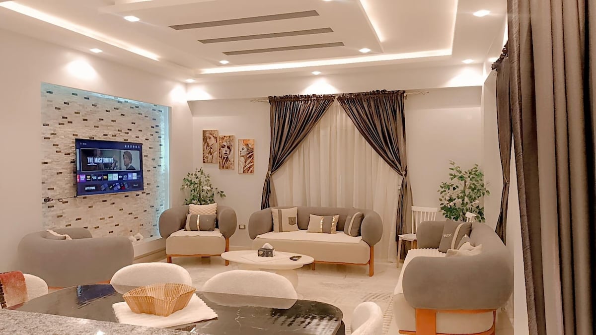 - If extra bed is needed we can add it for free. - You will be 2 mins away from Arkan Plaza, 5 mins away from Mall of Arabia, 8 mins away from Mall of Egypt. - You will be 15 mins from Pyramids of Giza and the Grand Egyptian Museum, and 25 mins away from the Nile river. - Bein Sports/SSC/Netflix.
