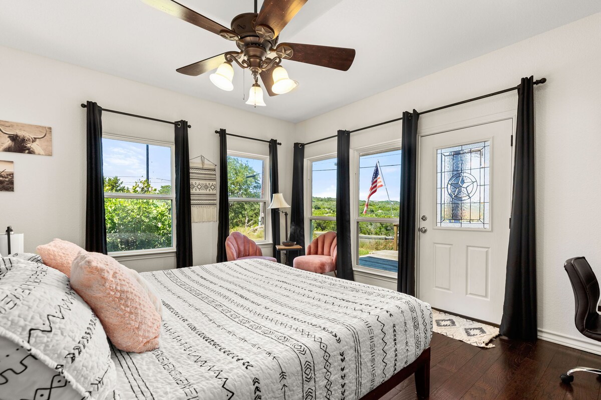This artful rural retreat is a mix of quaint charm and modern elegance. Connect with a loved one or simply disconnect from the world. Watch the sunset or stargaze in complete privacy from the porch or hot tub that overlooks a meadow encircled with trees. Step inside to a flood of natural light. Cook a meal in the fully stocked kitchen. Get a great night's rest in the organic king-size bed. Explore nearby wineries, breweries, and hiking trails. Austin is a short drive from here too!