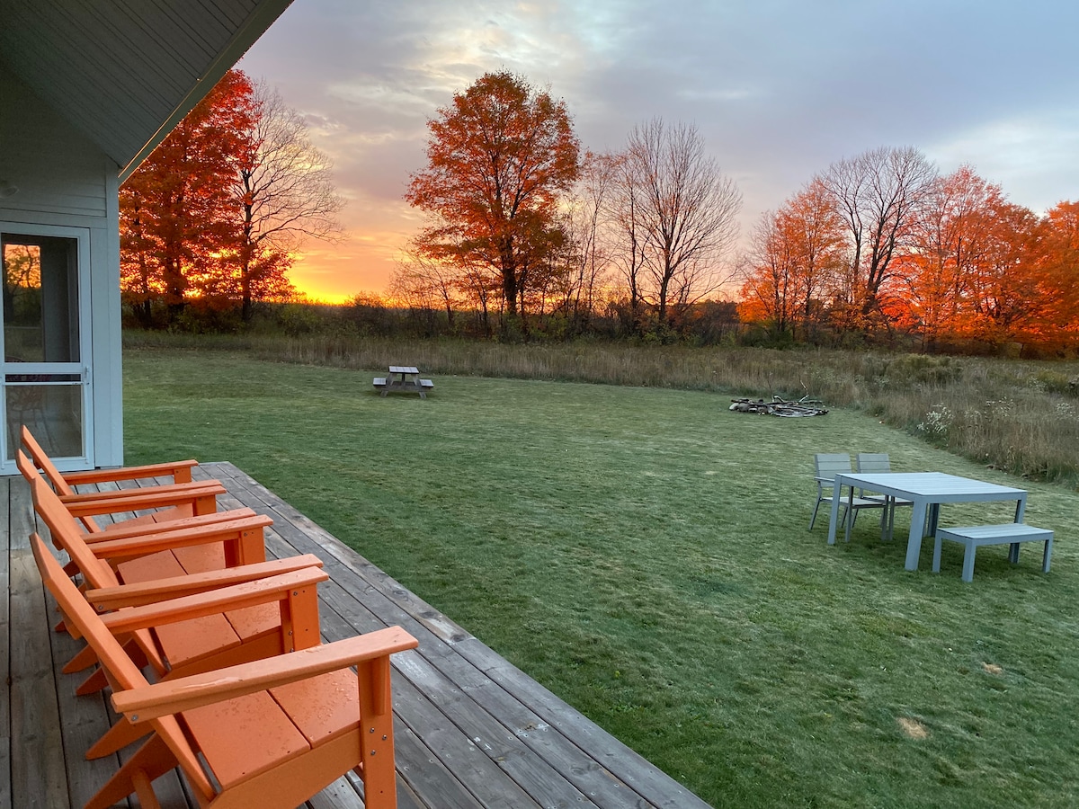 Escape to Orchard Ranch in Fish Creek - nesen pārveidots mājoklis, kurā ir 10 guļamistabas un privātas pastaigu takas, ugunskura vieta, galda tenisa galds un mājīgs kafijas bārs. Tikai dažu minūšu attālumā no Peninsula State Park un Fish Creek vakariņām. Lieliski piemērots ģimenēm, draugu grupām vai pāru atpūtai. Tagad ir atlikuši tikai daži brīvie vasaras datumi - rezervējiet un ietaupiet! -7 minūtes līdz Peninsula štata parkam -2 minūtes līdz Lautenbahas augļu dārzam -5 minūtes līdz Olu ostai