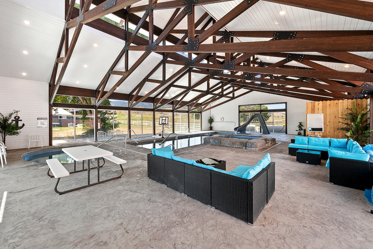 Cedar Farmhouse Bear Lake treehouse pool sleeps 20