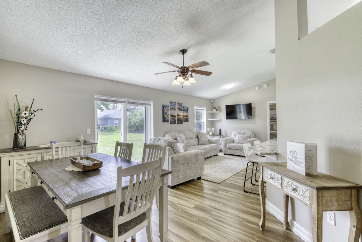 Izbaudiet stilīgas brīvdienas šajā nesen pārbūvētajā un modernajā mājoklī Palmkostas centrā! 🌴 Mājoklī ir mierīgs elektriskais kamīns, pilnībā aprīkota virtuve, apkārtējais apgaismojums, āra ugunskura vieta un daudz kas cits! Ir 2 guļamistabas, 2 vannasistabas un izvelkama dīvāngulta ar Queen izmēra gultu✨ Atrodas brauciena attālumā no tādiem galamērķiem kā vēsturiskā Sv. Augustīna, slavenā Deitonas pludmale un Orlando! Ir vairākas pludmales Flagler, Hammock, Crescent, Daytona...utt. visas īsas brauciena attālumā ⛱️