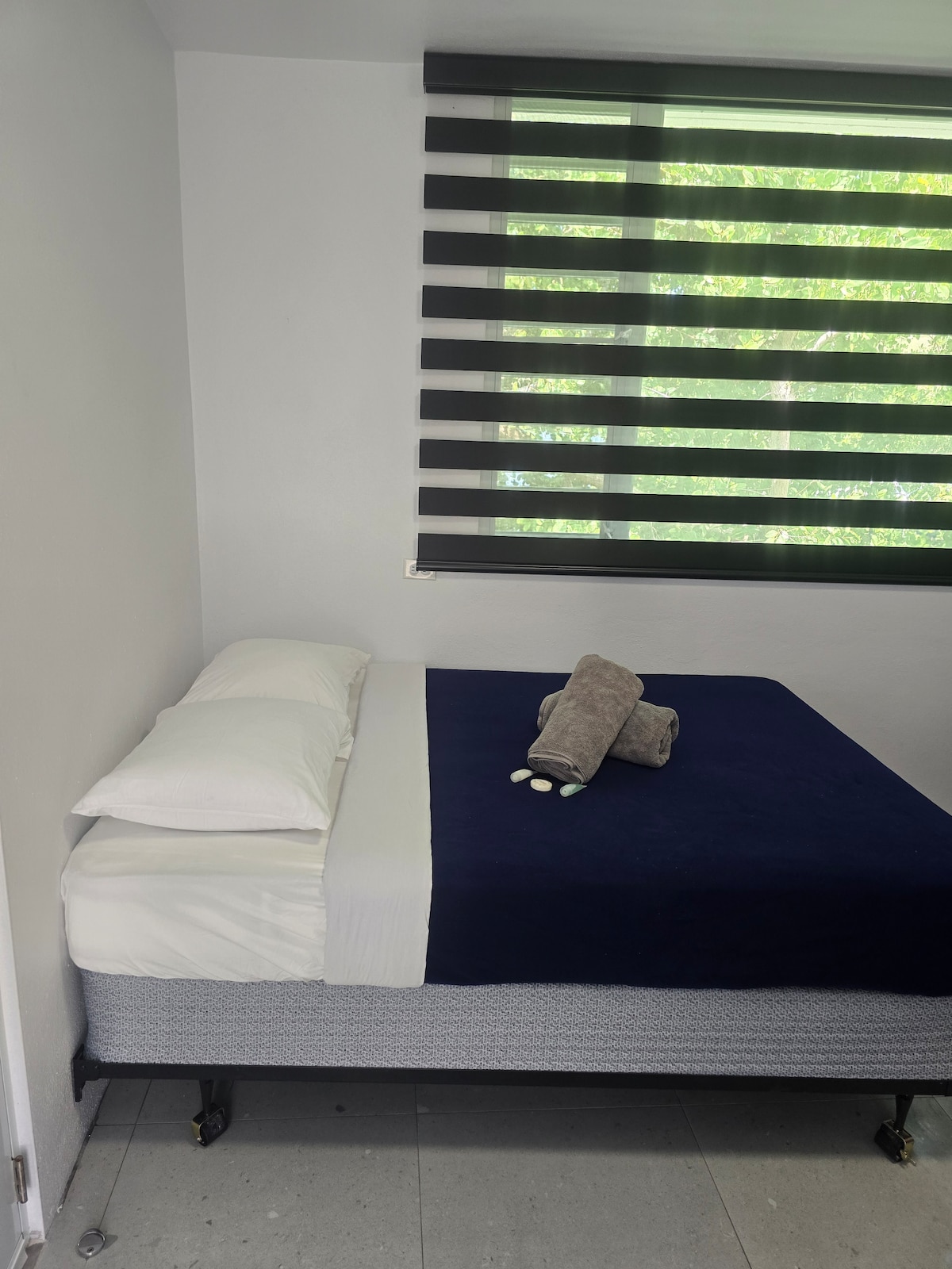 JAUNUMS!!! Skaista studija blakus pludmalei. Neliela minivirtuve ar mikroviļņu krāsni un nelielu ledusskapi. Viena guļamistaba, gaisa kondicionētājs, plaša vannasistaba. Neliela terases ieeja verandā. Īss 3 minūšu gājiens līdz Melones pludmalei, kas ietilpst Luis Peña dabas rezervātā un ir viena no labākajām snorkelēšanas vietām Kulebrā, ieskaitot 2 pludmales krēslus un ledus tvertni. Arī 15 minūšu gājiena attālumā no prāmju piestātnes, veikaliem un restorāniem pilsētā.