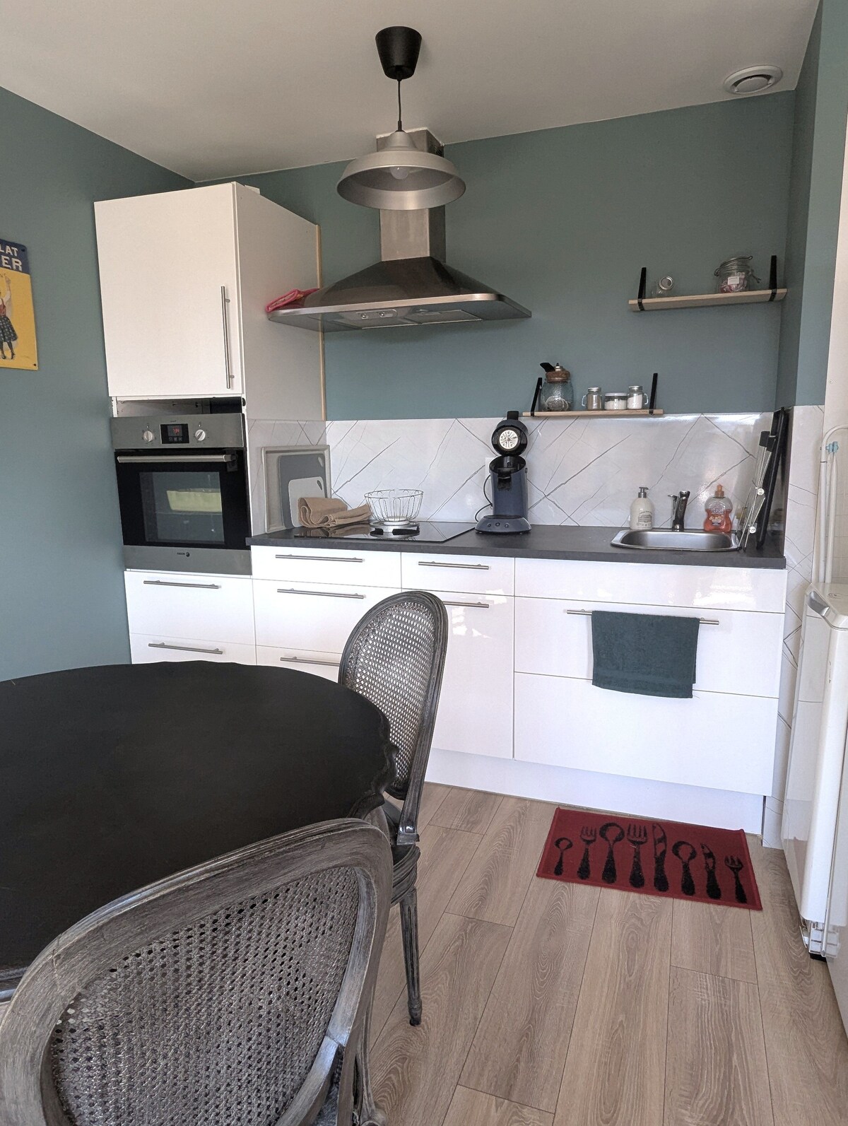 Atpūtieties šajā klusajā un elegantajā mājoklī. Jums ir bezmaksas ieeja ar skatu uz pilnībā aprīkotu virtuvi, kas atvērta viesistabai un viesistabai ar dīvāngultu iespējamai trešajai personai. Vannasistaba ar dušu un piestiprinātu tualeti. Liela istaba, kas sastāv no divguļamās gultas un ģērbtuves. Nāciet un uzlādējiet baterijas laukos un izbaudiet apkārtējos pārgājienus. (Dīķi,ezeri utt.)