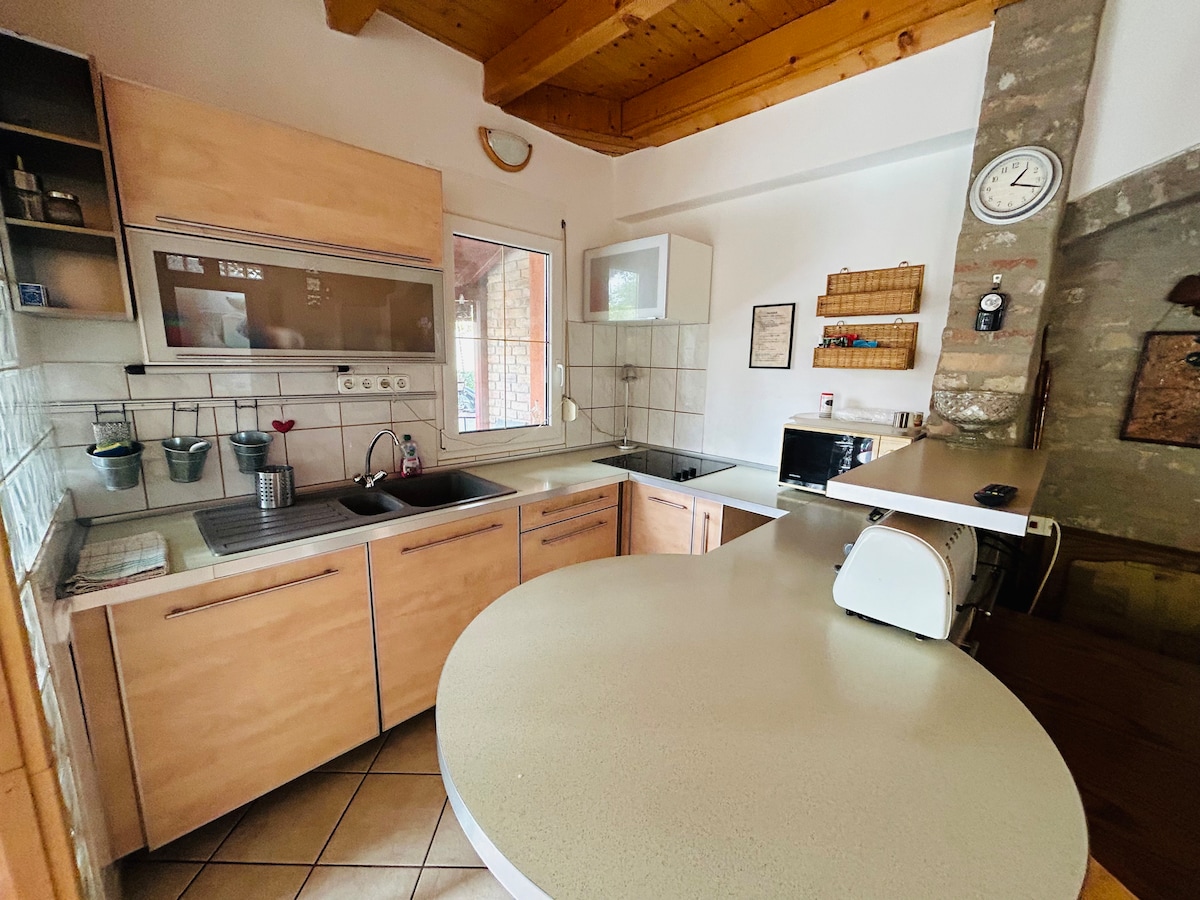 Pilnībā aprīkota ģimenes vasarnīca Szigligetā, Balatona ziemeļu krastā, Badacsony, Szent György kalna un Káli baseina tuvumā. 5 minūšu gājiena attālumā atrodas pludmale, osta, Villa Kabala, Rókarántó kalns un Óvár. Terase, liels dārzs, augļu koki, velosipēdi. WiFi, Smart TV, veļasmašīna, trauku mazgājamā mašīna. Izjūtiet un ieelpojiet Szigliget gaisu mūsu mājīgajā privātmājā netālu no pludmales, ostas un vulkānu kalniem. Liels dārzs, Wi-Fi, autostāvvieta.
