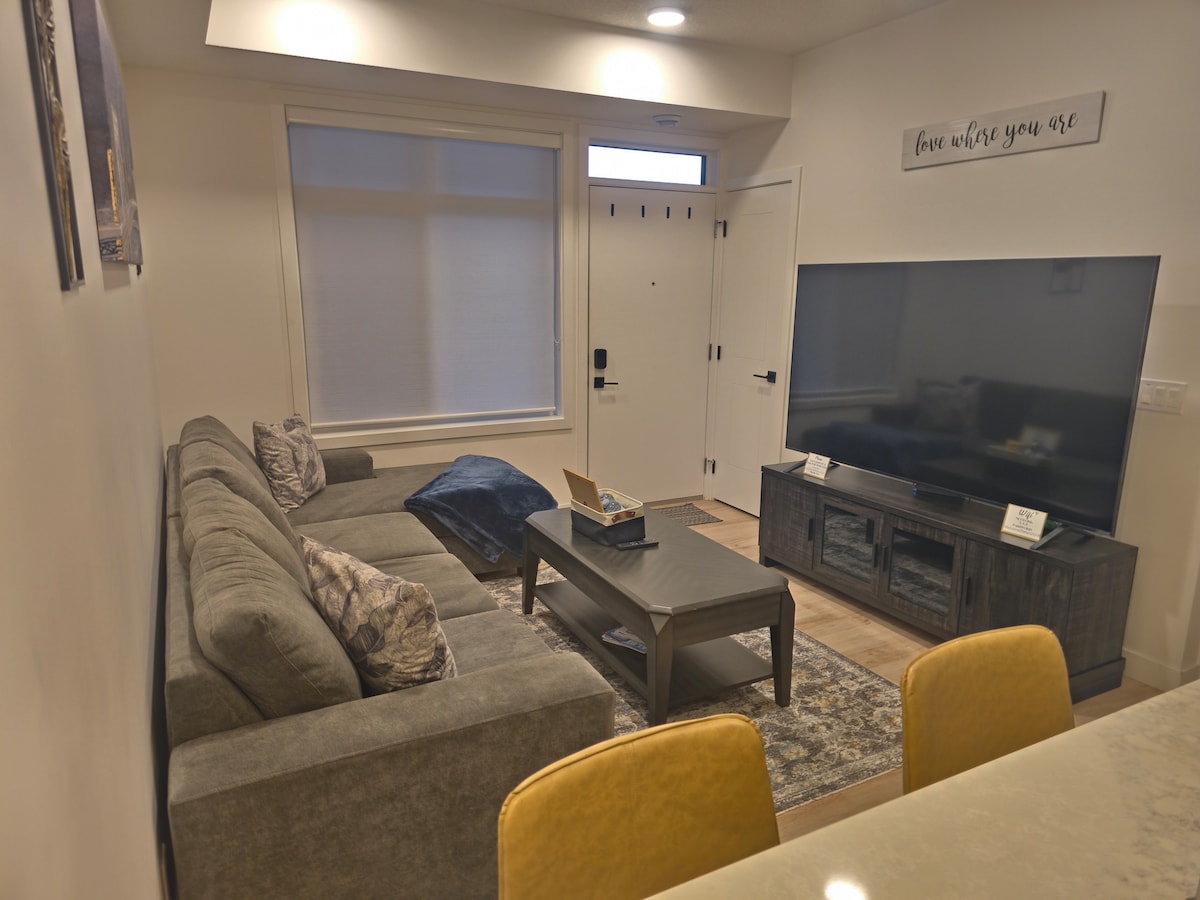 Enjoy a cozy AIR-CONDITIONED stay at Seton Sunshine, a gold tropical-themed townhouse in southeast Calgary. Ideal for solo travellers, couples, or small groups of up to 4, the townhouse features a queen bedroom, open-plan living space with a sofa bed, a full kitchen, and a patio area. Other amenities include TVs, Wi-Fi, a washer/dryer, access to nearby Seton amenities, transit, Hospital and YMCA. Located near the south health hospital and is the perfect base to explore the city and mountains