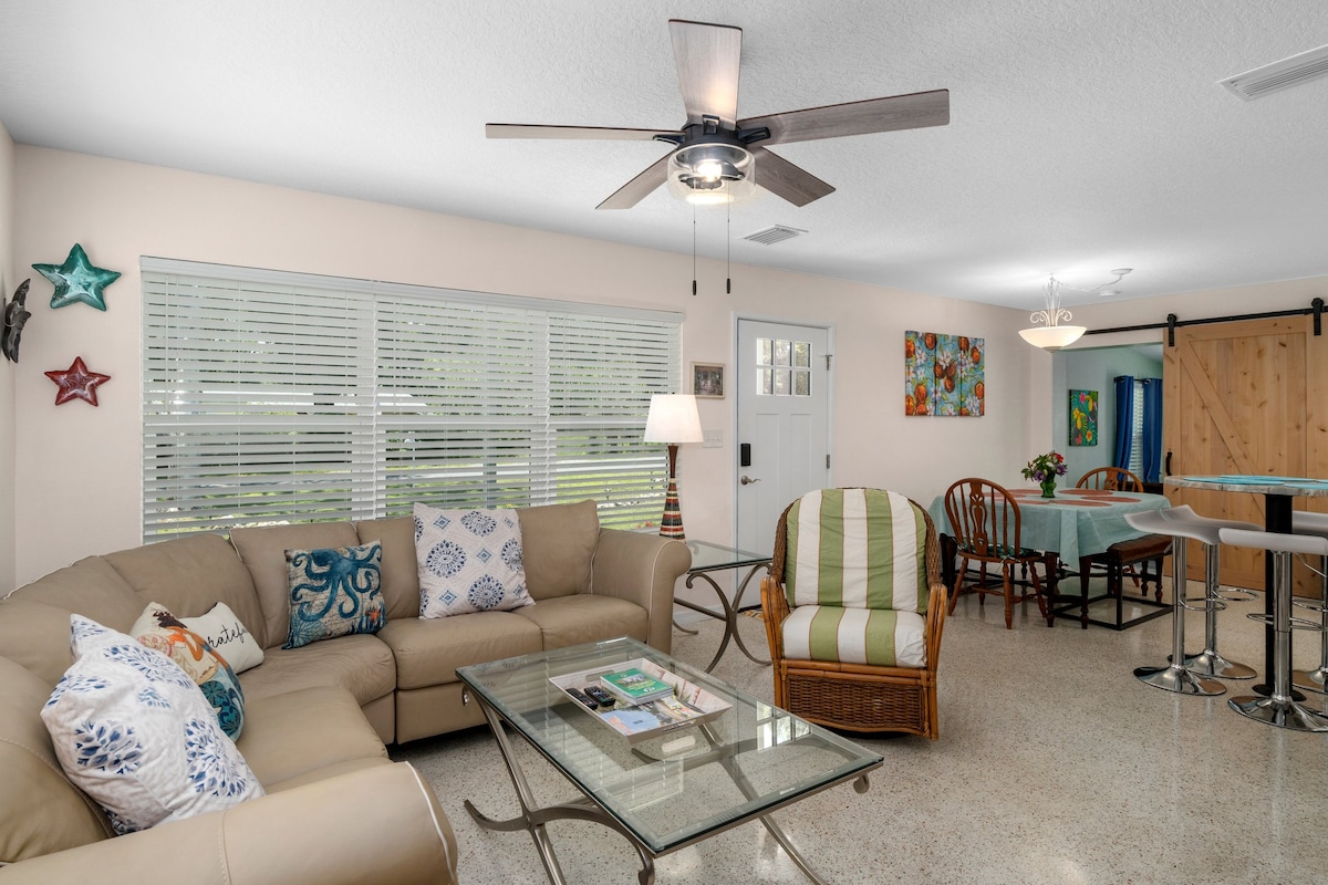 YAY!! IT'S TIME FOR FUN IN THE SUN!! Welcome to this updated, lovely home in a charming, quiet "Old Florida" neighborhood! The bright living space includes a 50" smart TV, breakfast bar with stools and a dining table. The kitchen is EXTRA stocked! The KING SUITE has a bathroom plus there is a Coral Queen Room and a Groovy Bedroom, with a Queen bed plus twin trundle, which share a hall bathroom. OSR is just over a mile from downtown, boat ramps & all that King's Bay has to offer.
