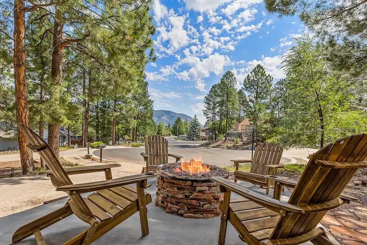 Après Ski Haus = changing color leaves & calls for snow, book early! Video walk-through but searching Après Ski Haus - Flagstaff, AZ. Enjoy our 2 bdrm, 2.5 bath rustic yet modern home that is surrounded by ponderosas & right on the 2nd tee. It is complete with an oversized deck featuring a fire-pit (with complimentary s'mores basket) & 6-seater hot tub! We are centrally located, making this the perfect home to relax after your Northern AZ adventures (hit the slopes / hike Nat'l Parks / golf)!
