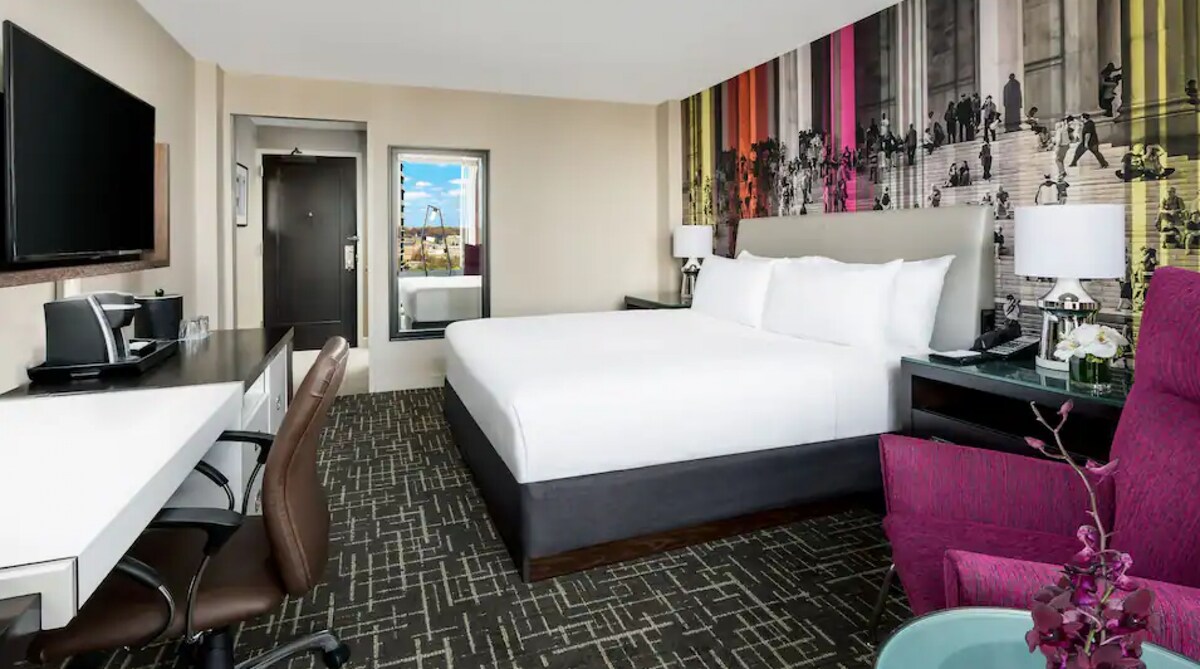 The hotel may require a credit card or deposit for incidentals. Resort fee of USD 40.58 per night, per room is collected by the hotel. Immerse yourself in the energy of the city with our City View King room. This room features a comfortable king-sized bed and offers captivating views of Washington, DC, providing a stylish and relaxing space for your stay. Enjoy the essence of the city from the comfort of your room in our City View King accommodation.