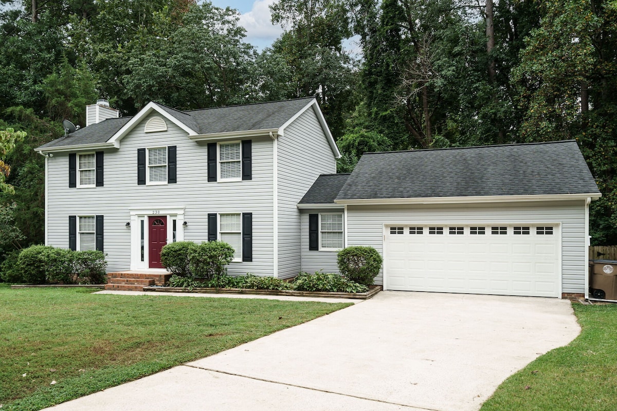 Enjoy a great workspace with fiber wifi for remote-friendly work or just relax with your family in a spacious home only 15-min to downtown Raleigh and North Hills. Onsite Amenities Include: Airport Pickup/Drop Off, Personal Chef & Meal Prep, Laundry Service, or Business Conference Room Package w/AV set up for an added fee. Offsite: (3-min away) Buffalo Rd. Aquatic Center. Olympic size pool, Kiddie pool, and water slide & Buffalo Rd. Park: Playground, Soccer, Track, Baseball field, and Trail.