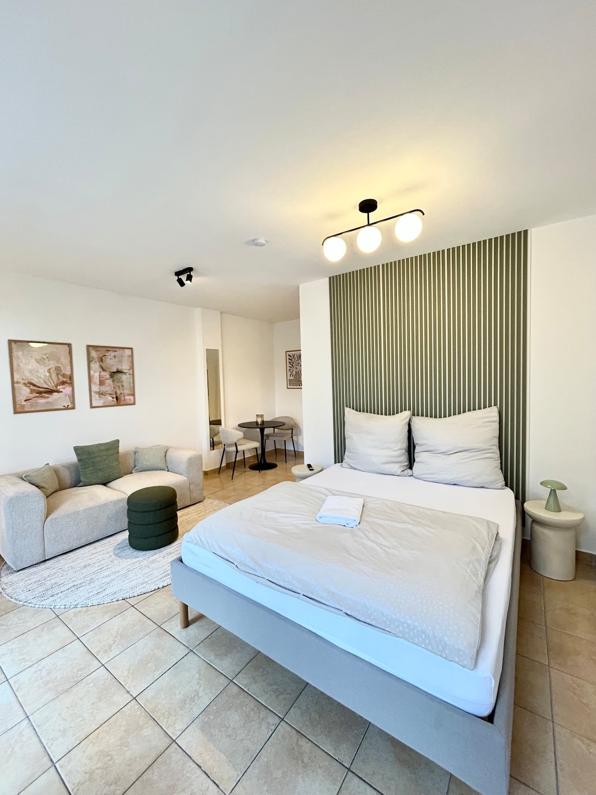 Willkommen in unserem hellen 45m² großen Studio im Herzen von Frechen! Perfekt geeignet für Alleinreisende, Paare oder Geschäftsreisende, bietet unsere Unterkunft Komfort, Stil und Barrierefreiheit in zentraler Lage. Ausstattung: • Offenes Studio mit gemütlichem Schlaf- und Wohnbereich • Voll ausgestattete Küche • Modernes Badezimmer • Barrierefreier Zugang • Highspeed-Internet (1000 Mbit/s) • Eigenständiger Check-in: Schlüsselbox