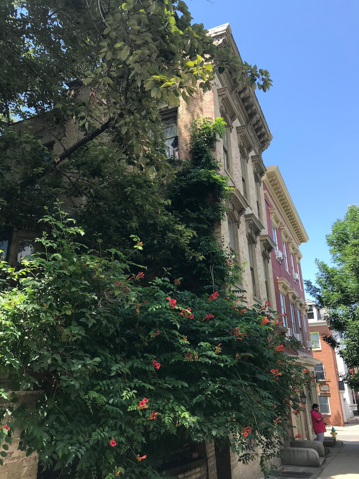 Apburoša 1910. gada ķieģeļu māja ar nožogotu pagalmu, kas atrodas pašā Frederikas pilsētas centrā, tikai dažu soļu attālumā no Frederikas labākajām alus darītavām, skaistās Carroll Creek un īpatnējiem veikaliem Esmarty laukumā. Māja ir ideāls veco un jauno apvienojums, kas apvieno atklātu ķieģeļu/akmens, dabisku apgaismojumu un cietās koka grīdas ar modernām papildērtībām, piemēram, pārbūvētu virtuvi, Wi-Fi, centrālo gaisu, luksusa matračiem un mājīgām mēbelēm. Ģimenei, darbam un suņiem draudzīgs (maksa 50 $ par uzturēšanos; uz mēbelēm nav suņu; maksimāli 2 suņi).
