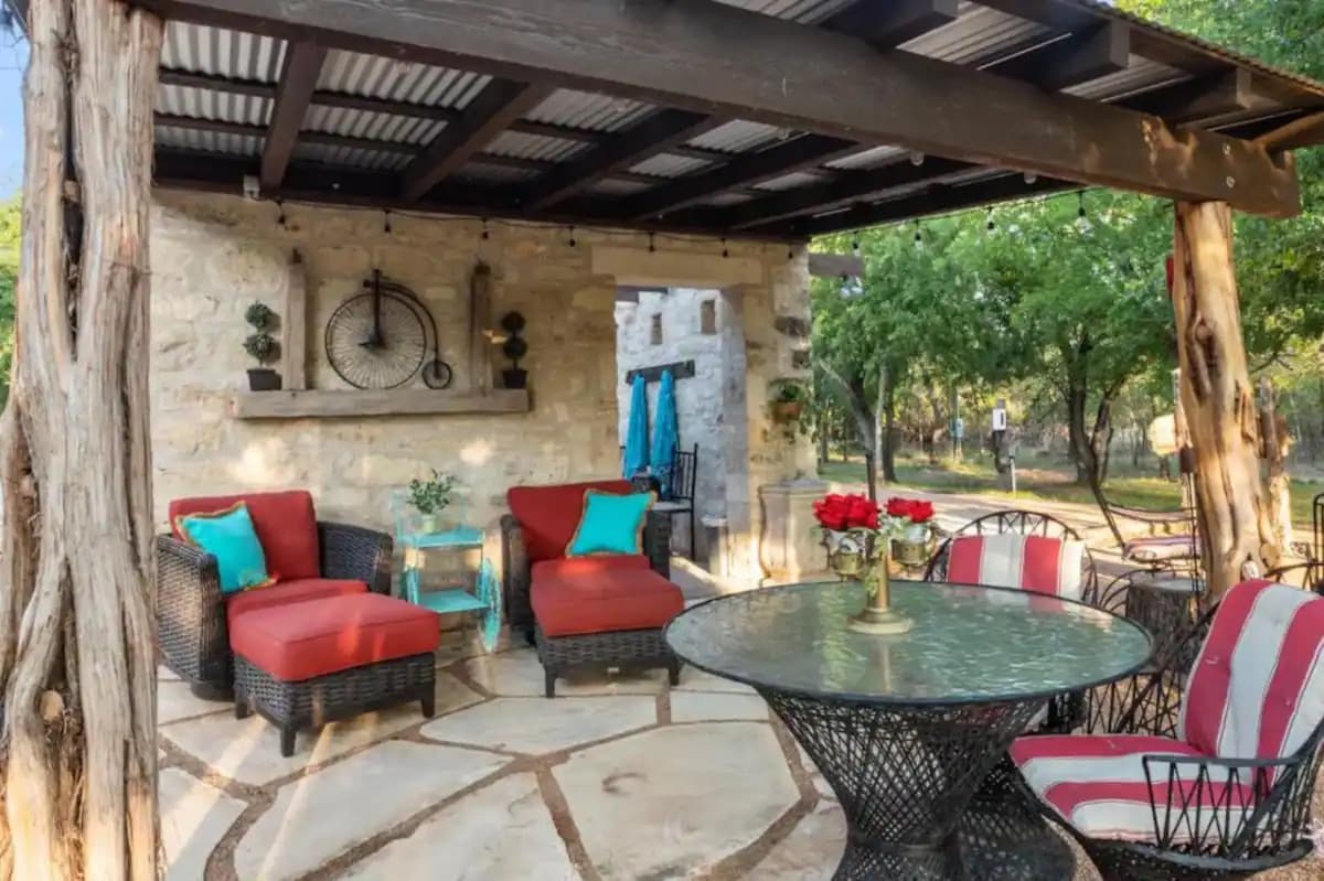 Mūsu burvīgais viesu nams, kas atrodas pašā Teksasas vīna valsts sirdī, piedāvā ideālu lauku elegances un modernu ērtību apvienojumu. Šī mājīgā atpūtas vieta, kas atrodas tikai dažu mirkļu attālumā no Frederiksburgas dzīvīgās galvenās ielas, aicina jūs atpūsties privātā burbuļvannā, izbaudīt 1800. gadu klinšu šķūņa vēsturisko šarmu un izbaudīt Hill Country dabas skaistumu - to visu ieskauj pasaules līmeņa vīna darītavas, veikali un restorāni.