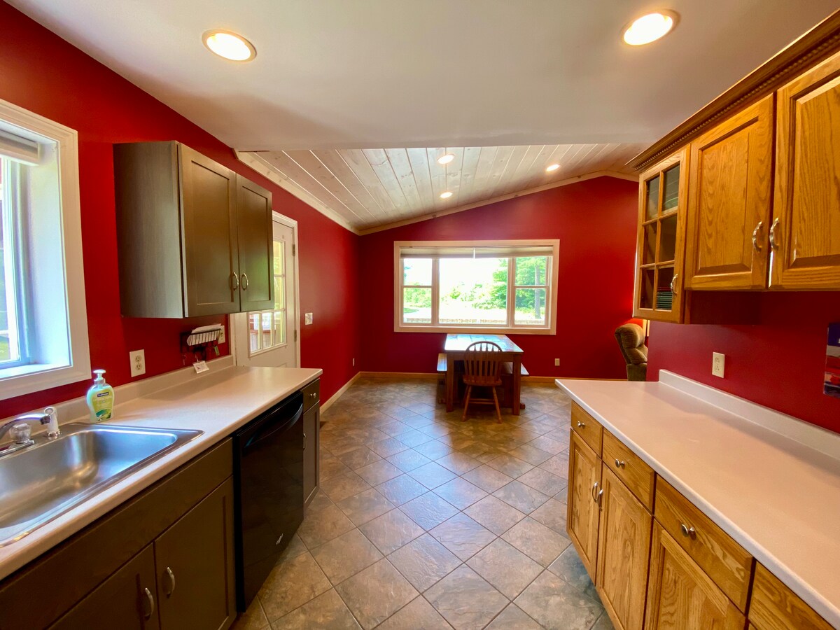 Dodieties mierīgā atpūtā pie ezera ar norobežotu saules apspīdētu klāju un privātu piestātni ar neticamu skatu uz Saullēkta ezeru, kā arī četrvietīgu burbuļvannu un sezonālām papildērtībām, piemēram, laivu ar pedāļiem, diviem kajakiem, SUP dēli, gāzes ugunskura galdu, centrālo gaisa kondicionieri, granulu krāsni un sniega kurpēm. Izbaudiet tuvumā esošās aktivitātes, piemēram, pārgājienus, lapu vērošanu, slēpošanu un gleznainu pilsētu, vietējo vīnogu dārzu un alus darītavu apmeklēšanu, vai vienkārši atpūtieties skaistā ezera krastā. Saulrieti var būt neticami!