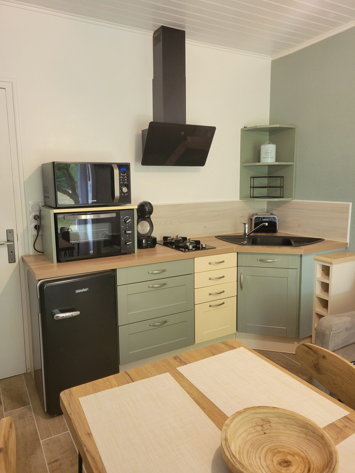 Piedāvājumā ir 28 m2 liela naktsmītne. Tā piedāvā: - Dzīvojamā istaba ar ēdamistabas zonu, dīvāngultu , televizoru, aprīkotu virtuvi - Guļamistaba ar dušu, tualeti( atvērta) un izlietni. Ārā ir dārza galds, gāzes plīts. Jūs varat baudīt tieši no īpašuma, klusus , drošus celiņus, skaistām pastaigām vai riteņbraukšanai, piekļuvi veloceliņiem. 6 km attālumā no Challans 20 km attālumā no pludmalēm 10 km attālumā no purviem