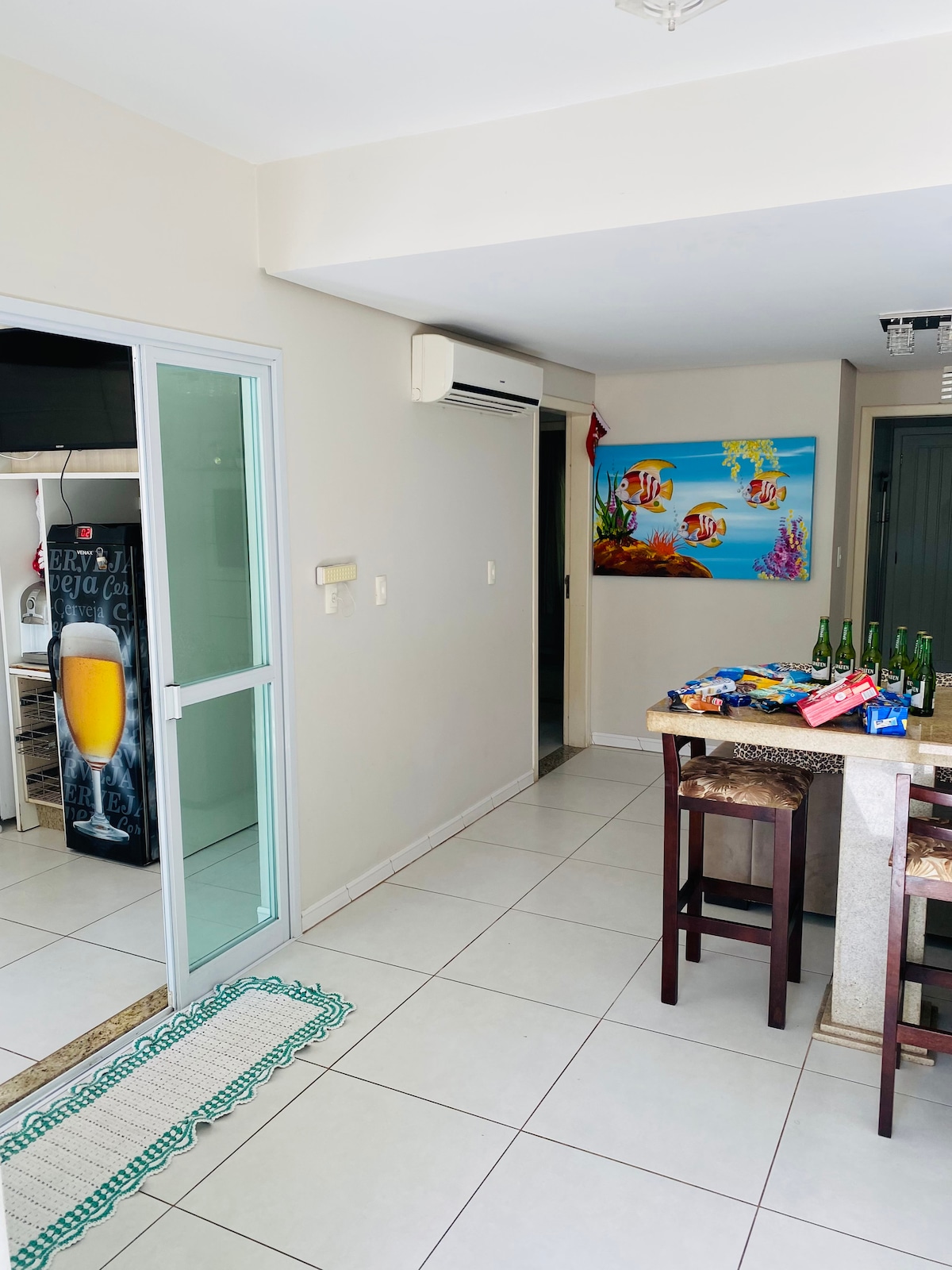 Casa pé na areia ar balkonu un grilu